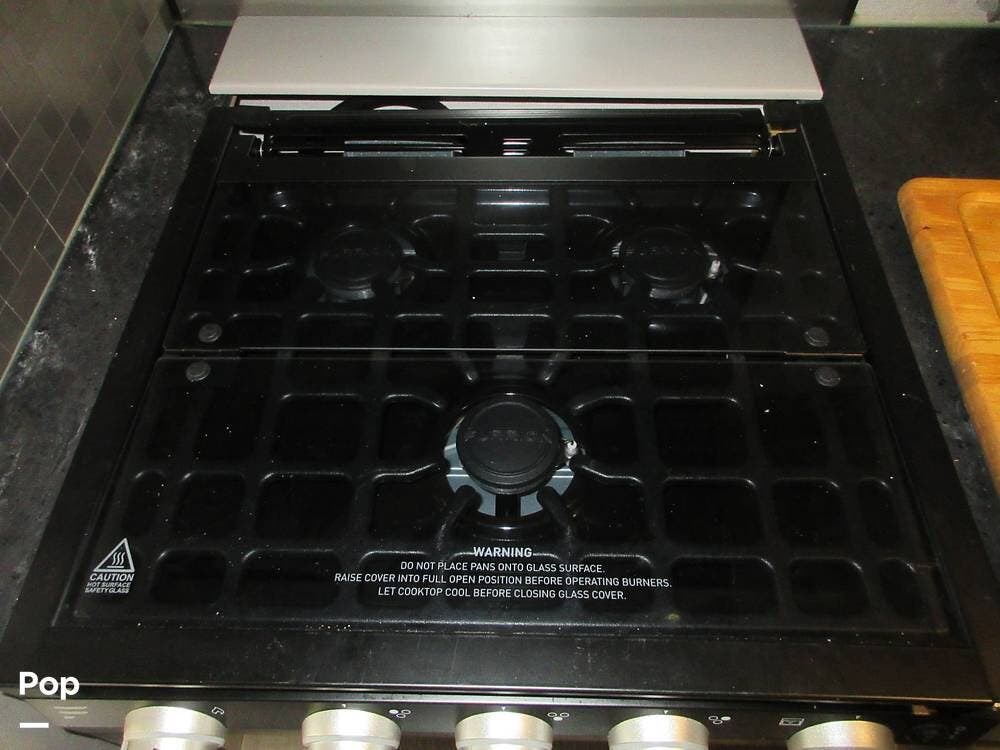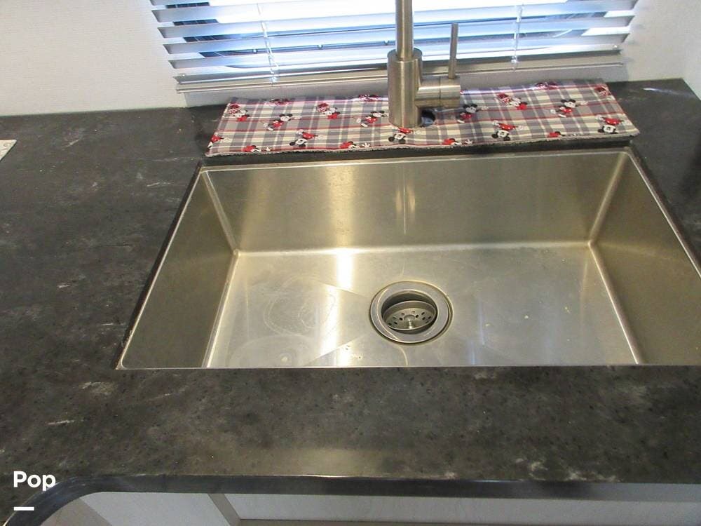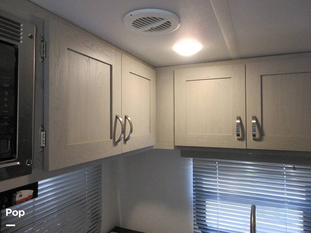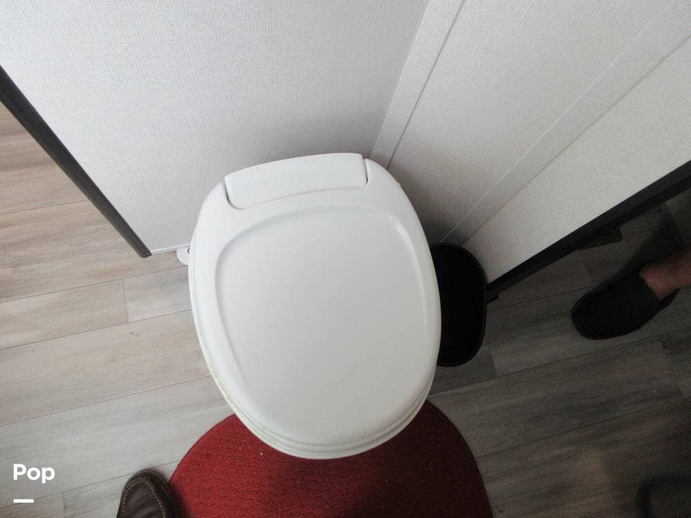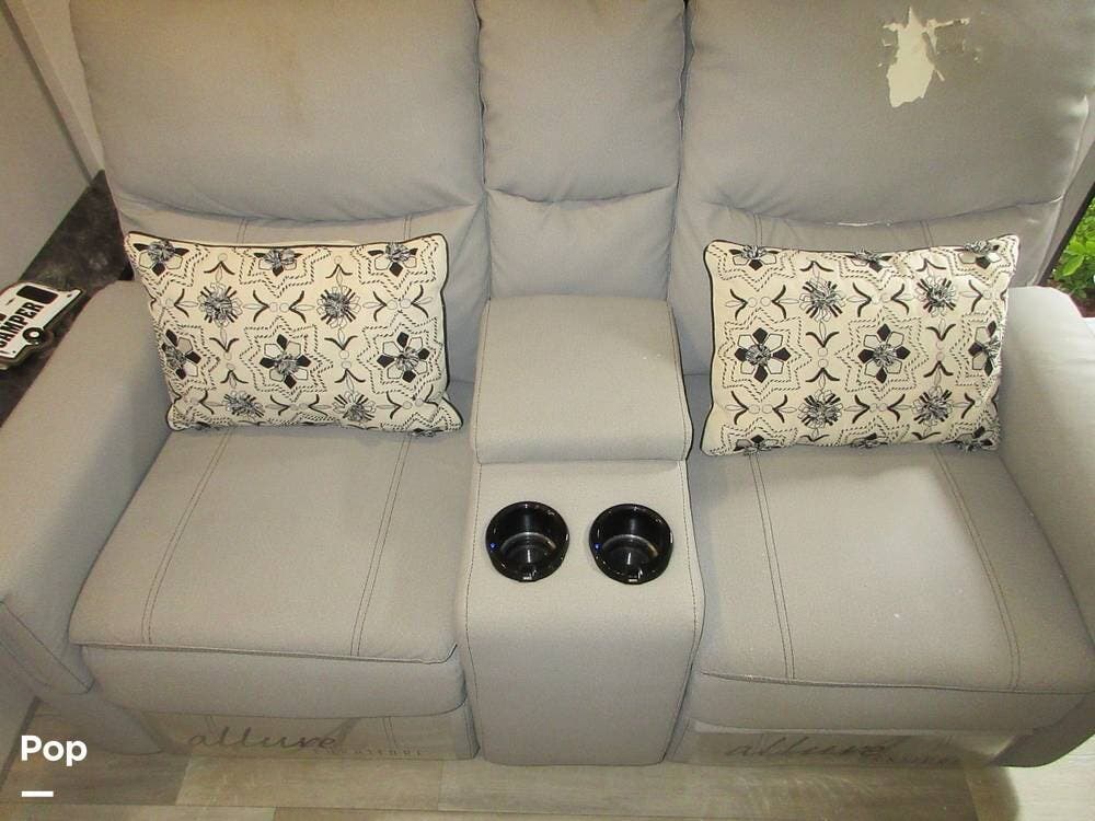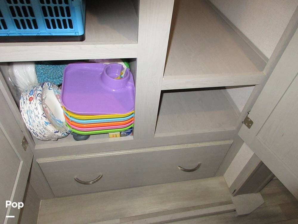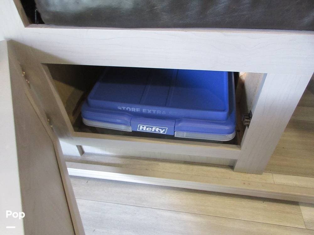 Kick your feet up on the theater seat? Sits directly across from the pop-up LED TV! Has a dinette that converts to another sleeping area.