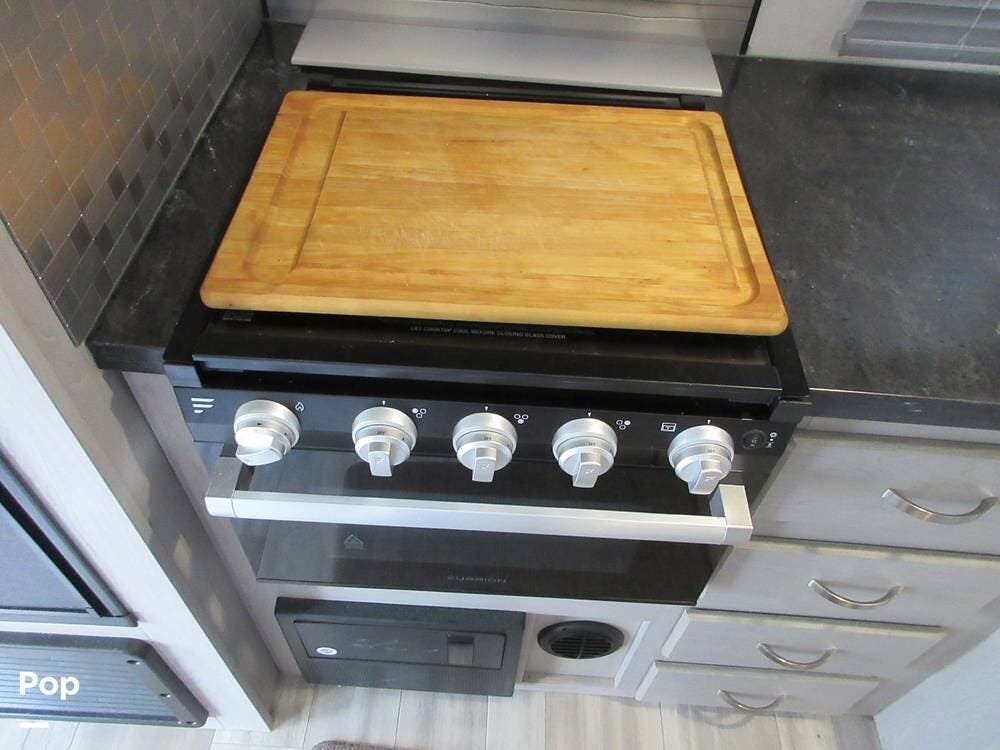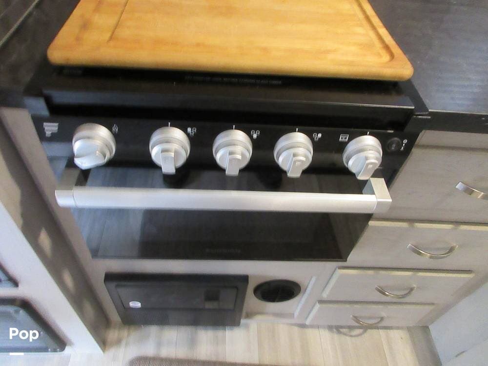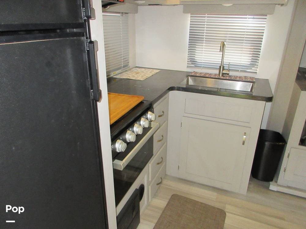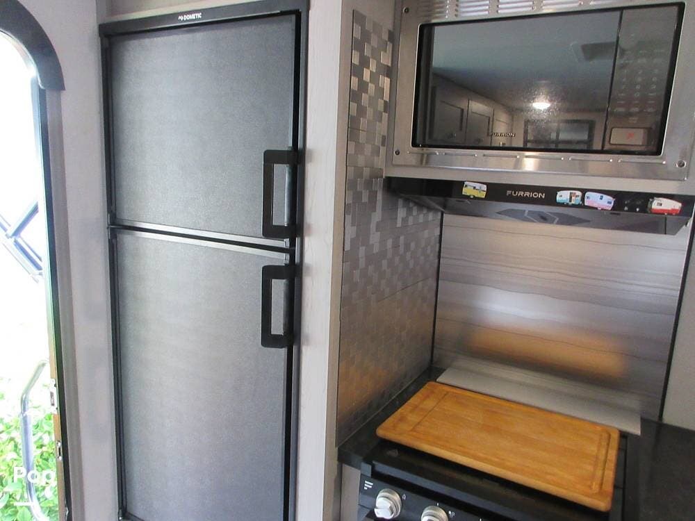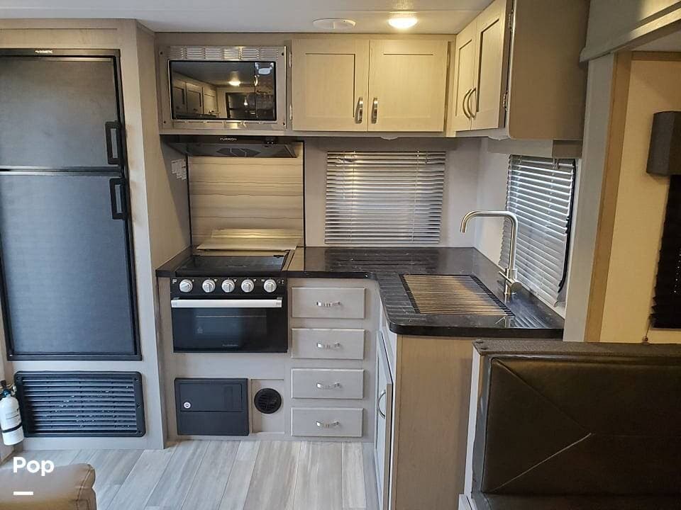 This 2021 Prime Time Tracer 24RKS has a full rear kitchen that includes plenty of counter space to prep and cook meals, plus there is a refrigerator to store all your perishables. Also a microwave, stove, refrigerator and an oven.