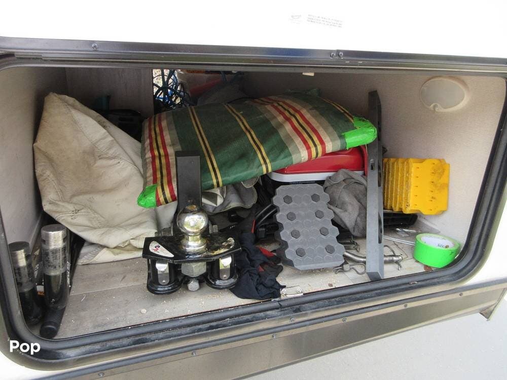 There is plenty of storage all around: an electric hitch, batteries, and a large awning for those outdoor cookouts! Ready to get back "On The Road Again" now!