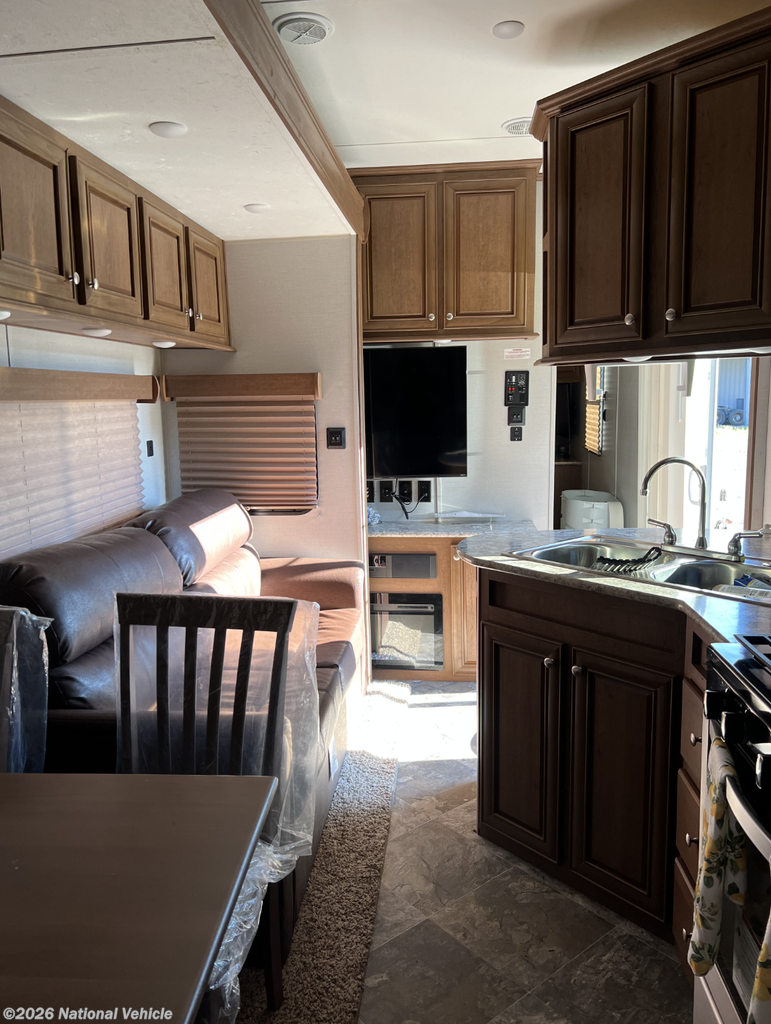 The kitchen is fully equipped for extended living, boasting a four-door residential refrigerator, 30? deluxe range, microwave, power vent, and abundant cabinet storage?making meal prep easy and enjoyable. Entertainment is handled by a CD/DVD stereo system with speakers, creating the perfect atmosphere indoors or out.