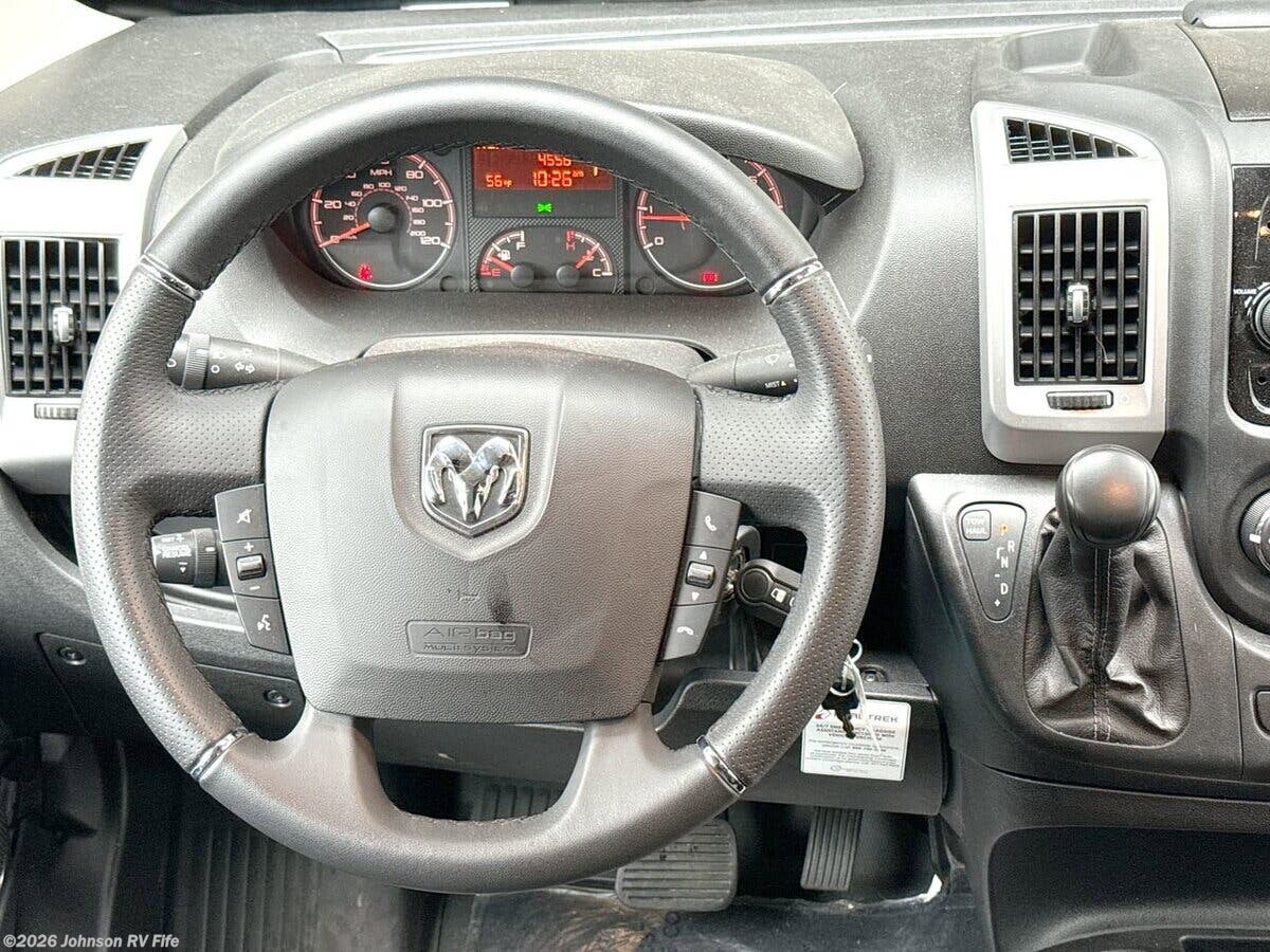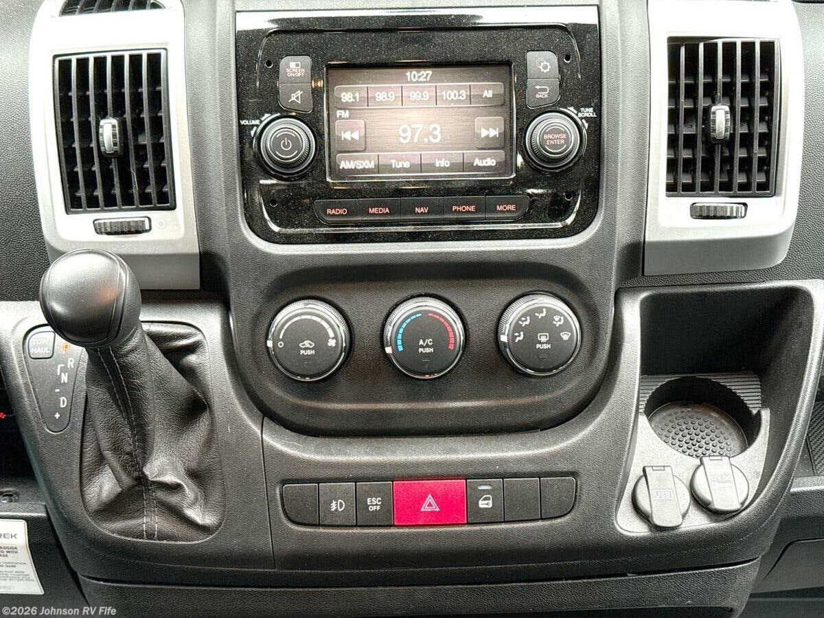 The 2021 Roadtrek Play is a versatile and well-equipped Class B RV, perfect for those who love the freedom of the open road. Built on the reliable Ram ProMaster 3500 Extended Van chassis, this vehicle combines the power and efficiency of a 3.6L V6 24-Valve Gas Engine, delivering 280 horsepower and 260 lb-ft of torque. The 6-speed 62TE automatic transmission ensures smooth handling, while the 220-amp alternator and 280-amp generator provide ample power for all your adventures. The exterior of the Roadtrek Play is designed for both style and functionality. It features 16-inch polished aluminum wheels with LT225/75R16E tires, ensuring a stable and comfortable ride. The Class III receiver allows for towing additional gear, making it ideal for extended trips. The 13-foot power awning provides shade and shelter, enhancing your outdoor living space. Inside the cab, you'll find a range of features designed for comfort and convenience. These include: - Power entry steps for easy access - Driver and passenger airbags for safety - Power side windows and power folding heated side mirrors - Climate control to maintain a comfortable environment - Uconnect 10-inch touchscreen with voice command, GPS navigation, and SiriusXM - Telescoping steering with steering wheel controls - Rearview backup camera and Park Sense with rear park assist - Cruise control for relaxed driving The living spaces in the Roadtrek Play are thoughtfully designed to maximize comfort and utility. The open isle floorplan and dark tint windows create a spacious and private atmosphere. Heavy-duty magnetic door screens and overhead cabinets add to the convenience. Dining amenities include: - A removable table for flexible dining options - Flip-up countertop extension for additional prep space - Stainless steel sink for easy cleanup - 12v 5cf refrigerator to keep your food fresh - 2-burner cooktop with flush cover - 110v microwave oven for quick meals For sleeping arrangements, the Roadtrek Play offers versatility with a rear lounge that converts into twin beds (30x75) or a king bed (73x75). An optional front bed (33x70) provides additional sleeping space. The enclosed wet bath is equipped with a sink, shower, and toilet, ensuring you have all the comforts of home on the road. Mechanical features include: - Solar pre-wire and solar-ready capabilities - 5.9-gallon LP tank and 30-amp detachable service cord - 3000w inverter for reliable power - 11k roof AC (110v) and 16k LP furnace for climate control - Tankless on-demand hot water system - 12v macerator pump and outdoor shower for added convenience The 2021 Roadtrek Play is a well-rounded RV that combines comfort, functionality, and style, making it an excellent choice for travelers seeking adventure and freedom. ??