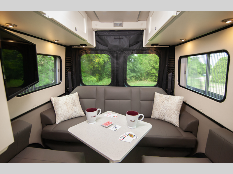 Whether you need more space for your bicycles, gear, or luggage, you will love the open concept layout of the Zion coach. Each morning you can prepare breakfast on the two burner propane stove, or use the convenient microwave oven. Head out to find a trail or two, and the wet bath will be waiting for you when you return. The countertop extension with a charging station will provide a place to download your pictures from your hike, and there is a slide-out pantry to grab a snack to hold you over until dinner. The side facing rear power sofas easily convert to twin beds or a queen-size bed for your comfort.