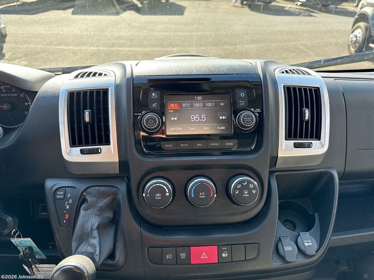 The 2021 Roadtrek Zion is a versatile and well-equipped Class B RV, designed to offer comfort and convenience on the road. Built on the robust Ram ProMaster 3500 chassis, this vehicle combines the reliability of a powerful engine with the luxury of a fully-equipped living space, making it an ideal choice for both short getaways and extended adventures. **Performance and Chassis:** - Ram ProMaster 3500 Chassis - 3.6L Gas V6 24 Valve Engine - 280 HP with 260 lb-ft Torque - 9-Speed 62 TE Automatic Transmission - 220-Amp Alternator - 95-Amp 800-CCA 12v Battery - 280-Amp 12v Under Hood Generator - Four Wheel Anti-Lock Disc Brakes - 16-inch Polished Aluminum Wheels - Tire Inflation Kit - Electronic Stability Control - 3500# Towing Receiver **Cab Features:** - Driver and Passenger Airbags - Power Folding Heated Side Mirrors - Auto Dim Digital Display Rearview Mirror - Uconnect 5 Infotainment Software with a 10-inch Touchscreen - AM/FM/Sirius/Bluetooth/USB/Aux Connectivity - Voice Command - Telescopic Steering with Steering Wheel Controls - Climate Control - Rearview Back-up Camera - Cruise Control - Blind Spot Monitoring - Rear Cross Path Detection - Parking Assist System **Living Spaces:** - Power Patio Awning for outdoor relaxation - Power Side and Cab Entry Step for easy access - Peek Thru Window Vents for ventilation - Heavy Duty Magnetic Screens - Rear Power Sofas for comfort and flexibility **Dining and Kitchen:** - Front and Rear Dining Areas - 5cf AC/DC Refrigerator - Recessed Stove with Flush Cover - Microwave Oven (110v) **Electronics:** - Charging Station for devices - 24-inch Smart TV with Rotating Bracket for entertainment **Sleeping Arrangements:** - Various sleeping options to suit different needs **Bathroom:** - Enclosed Bathroom with Sink, Shower, and Toilet **Mechanicals:** - 9.5-Gal LP Tank - 400-Amp Lithium Battery System - 300w Solar Panels for sustainable energy - 3000w Power Inverter - 110v External Power - 11k Roof AC (110v) - 16k Furnace for warmth - LP Tankless Hot Water System - 12v Macerator Sewage Pump - Outdoor Shower for convenience The 2021 Roadtrek Zion is a perfect blend of functionality and luxury, offering a home-like experience on wheels. Whether you're exploring the countryside or navigating urban landscapes, this RV ensures a smooth and enjoyable journey. ??