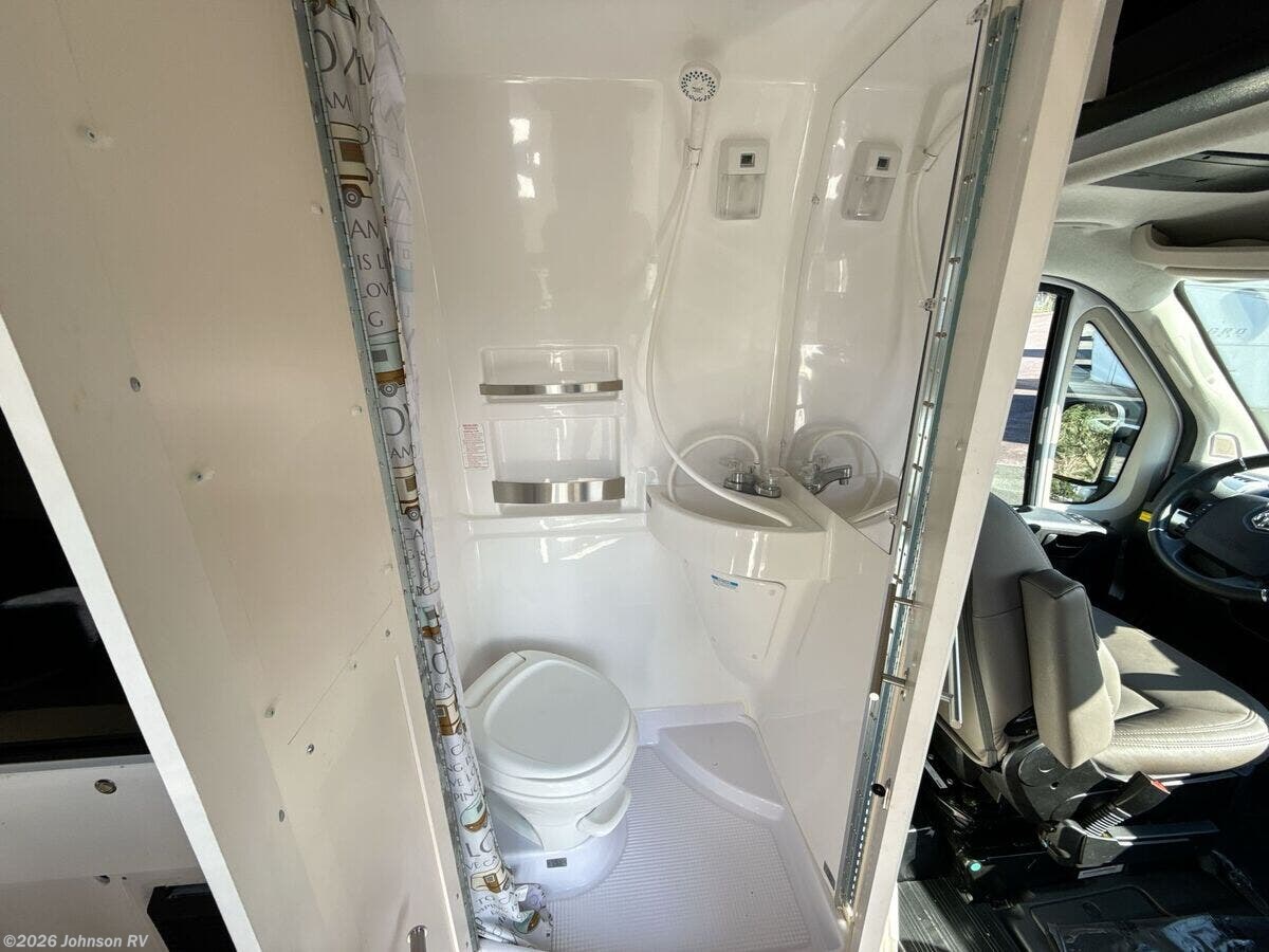 Features Include: 220-Amp Alternator, Tire Inflation Kit, 10-inch Touchscreen, Voice Command, Telescopic Steering, Climate Control, Cruise Control, Power Patio Awning, Charging Station, Enclosed Bathroom, Sink, Shower, Toilet Mechanicals, 9.5-Gal LP Tank, 300w Solar, 3000w Power Inverter, 110v External Power, 11k Roof AC 110v, 16k Furnace, Outdoor Shower