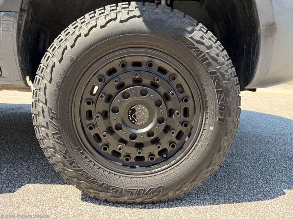 Method wheels, Falken Wildpeak AT3W tires, Agile Offroad RIP suspension, Owl storage box, 1Up 2-bike rack, CR Laurence T-Vent window, Fiamma manual awning, and outdoor hot shower.