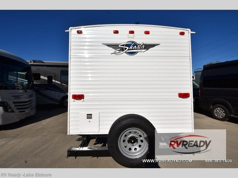 You are sure to find a Shasta travel trailer or toy hauler by Shasta RV that will fit your needs with a variety of models packed with convenience and value! They are constructed with a cambered steel I-beam frame, Diflex II TPO roof material, and a .024/.030 aluminum exterior skin with an 8' exterior width, plus the aerodynamic radius front profile makes it easier to tow. Their interiors are bright thanks to the LED lighting and are modern with woodgrain cabinetry and residential styling countertops. Each model includes a Shasta sanitize station so you can clean up after fishing, plus there is an outside shower to wash the mud off your hiking boots! Each one is also prepped for you to add extra conveniences like the back-up camera, a solar panel, and even Wi-Fi!