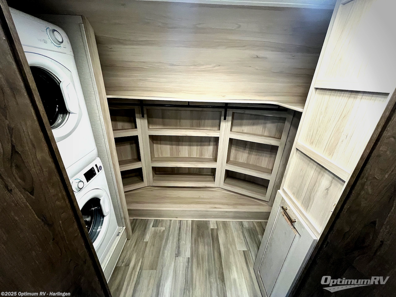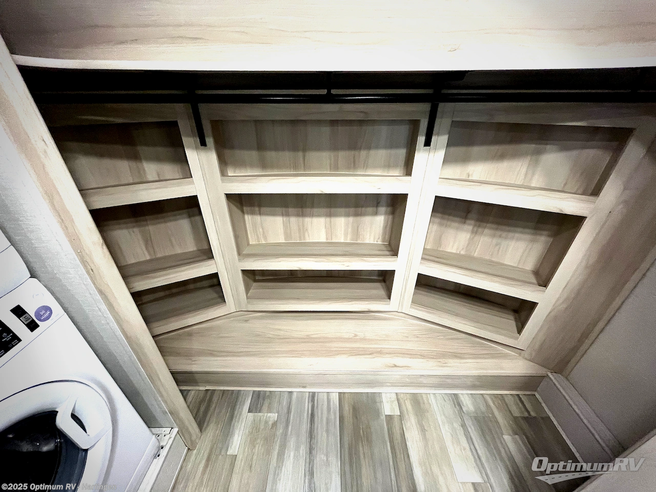 This Paradigm fifth wheel is an absolute dream! Whether it's the sunlight streaming in through the Atrium windows, or it's the bright LED dimmable lighting on the interior, you will find illumination all throughout this unit. The backlit crown molding in the living area provides an elegant feel to this already stylish fifth wheel, and modern technology is abundant with the two Smart TVs, USB charging ports, and LED motion lights in the pantry. You will be completely set for full-time living with the preparations for a dishwasher and the preparations for a washer/dryer, and the hamper in the walk-in closet will make it easy to keep your dirty clothes out of sight.