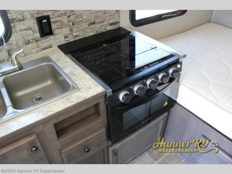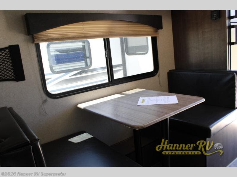You and your spouse will love this travel trailer that includes a booth dinette for an overnight guest. The two burner cooktop and microwave allow you to prepare breakfast, lunch, and dinner and leftovers can go in the 6 cu. ft. double door refrigerator. You will find plenty of storage for all your items in the overhead cabinets. After spending your day outside, get cleaned up in the tub or shower surround and the power roof vent will keep this space fresh and cool! And you might like to add a bunk option for more sleeping space, a 7' rear awning, a Jack-It 2 bike carrier, and/or more from the options list.