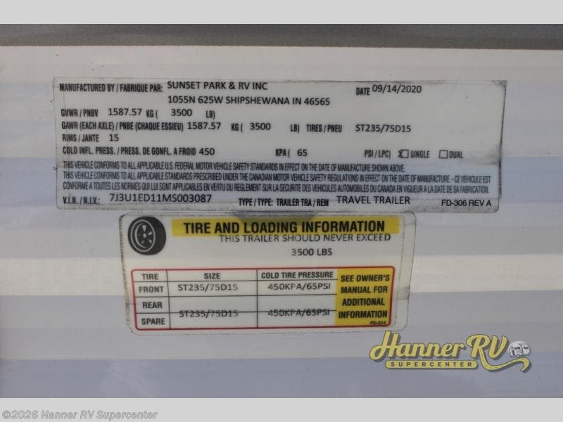 Request More Info on this 2021 Sunset Park RV Sun-Lite 16BH Offered for sale by Hanner RV Supercenter