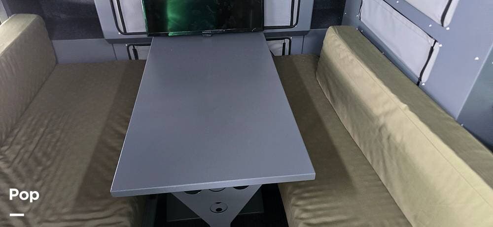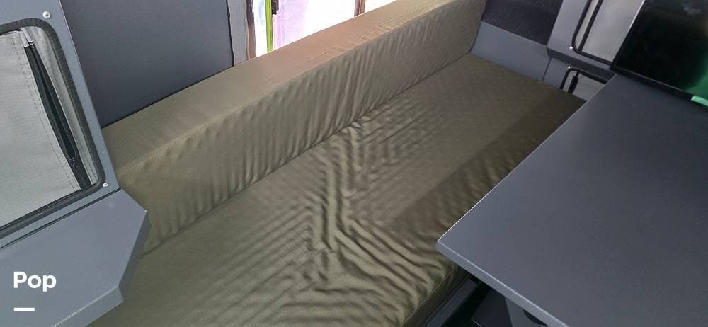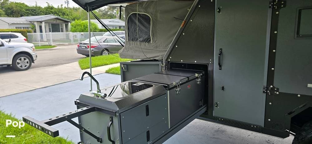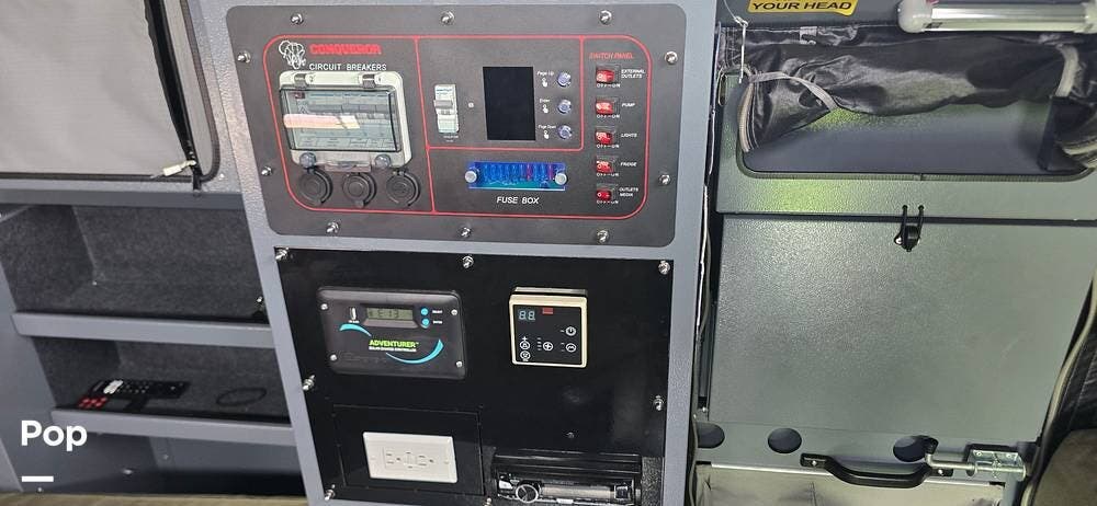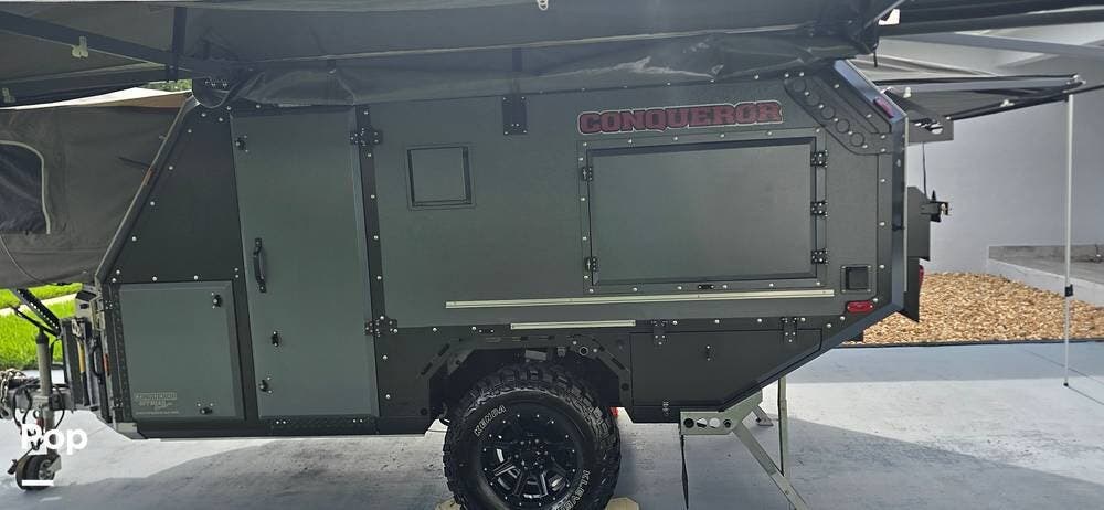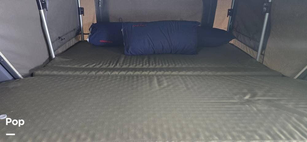 Inside, the Conqueror is surprisingly comfortable and well-equipped. The pop-up roof expands the interior space, adding airflow and headroom when you're camped. Two slide-out sleeping pods collectively sleep up to four people, featuring upgraded mattresses for a restful night's sleep.