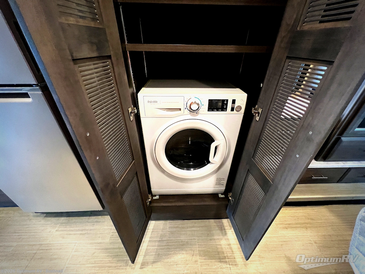 You won't want to travel any other way after stepping inside this Challenger Class A gas motorhome! It features a rear private bedroom with an RV king Tilt-A-View inclining bed, a large wardrobe to keep your clothes neat, and a 32" TV for those nights when you just can't fall asleep. The full bathroom features everything you will need to get squeaky clean each morning, and across from the bathroom there is an area prepped for you to add the optional stackable washer/dryer so that you can extend your trip even longer with clean clothes. The 68" sofa bed, the 68" home theater seating, and the booth dinette not only provide seat belt seating, but they also provide comfortable places to relax while you watch your favorite shows on the 49" LED TV or the 39" LED TV!