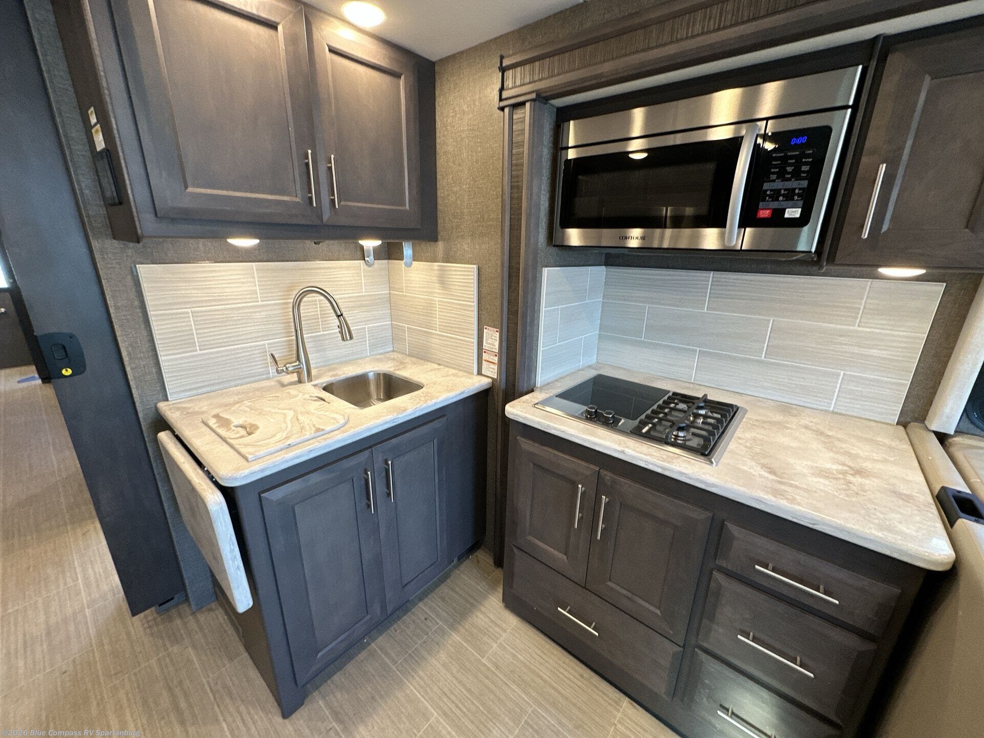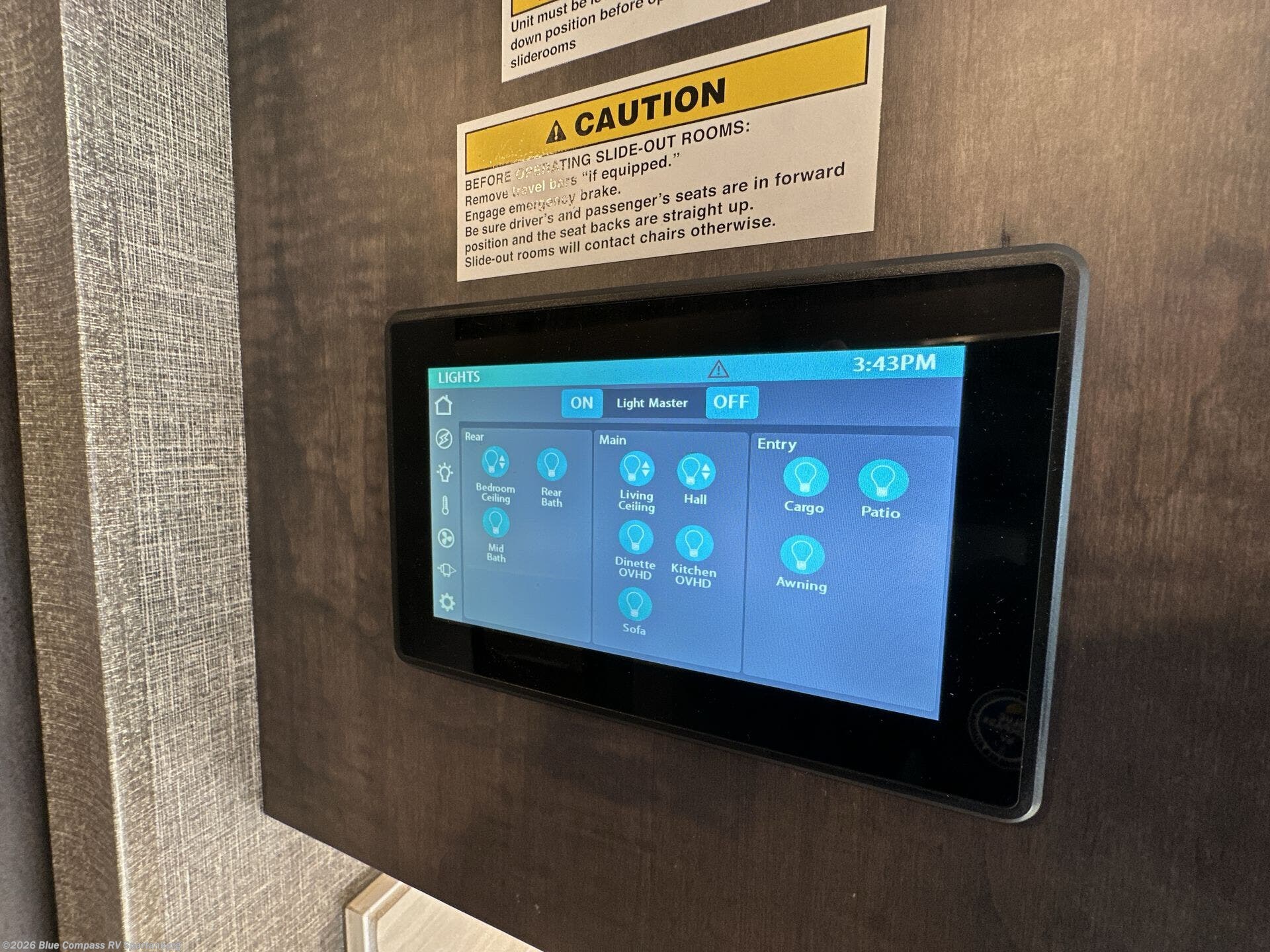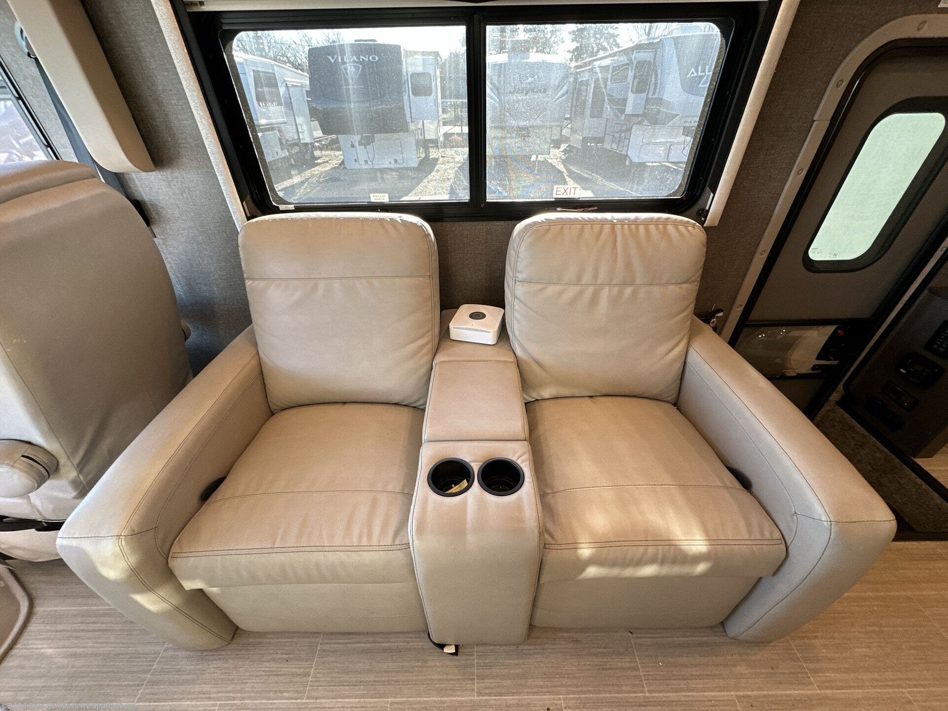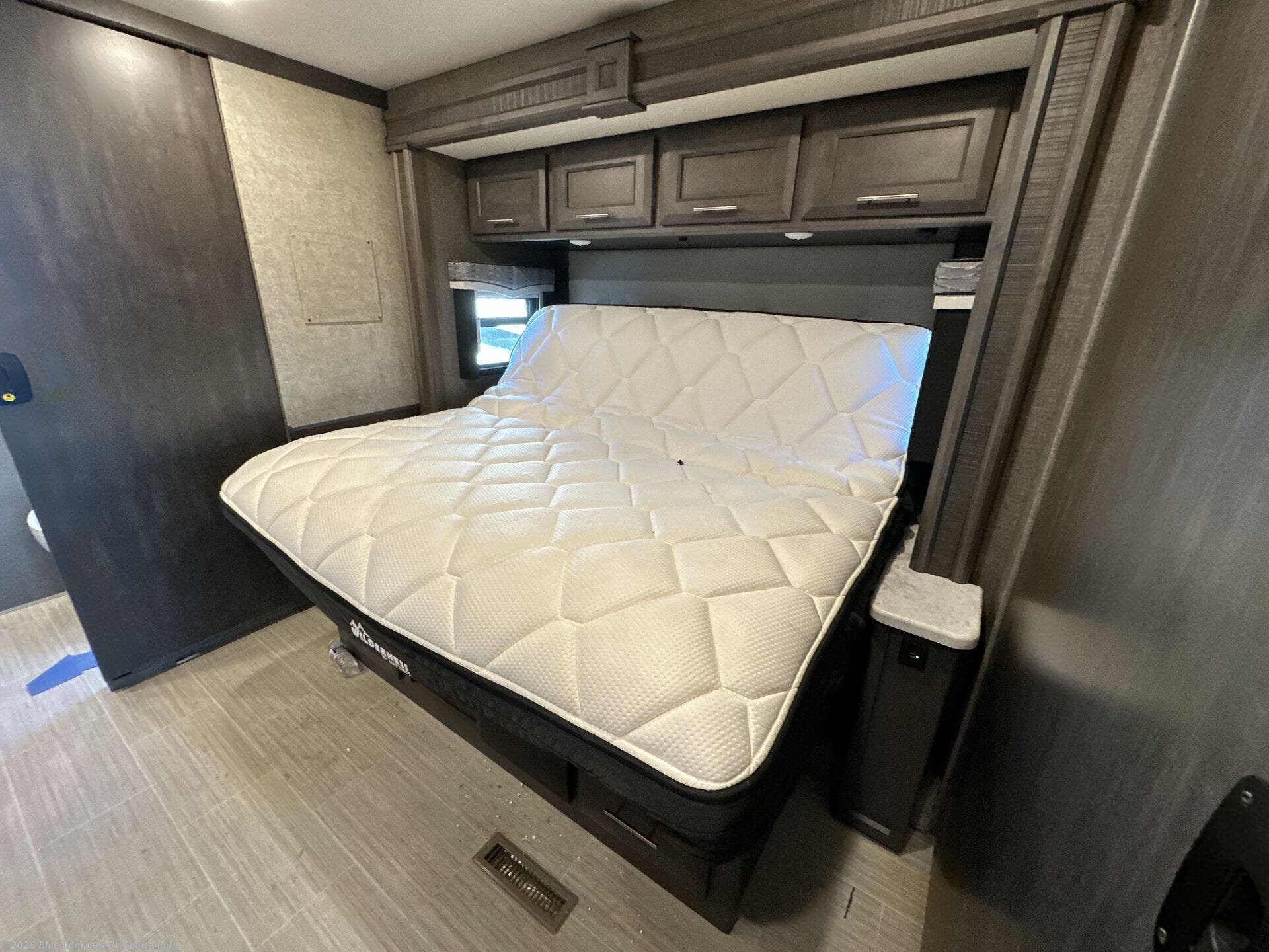 Search for that perfect mountaintop view or lakeside retreat with your powerful and luxurious Thor Motor Coach Challenger Class A gas motorhome! The Challenger is pet friendly with its Pet-Link multi-purpose tie-down, and it is also equipped with a 100W solar charging system that can be used to distance yourself from crowds and surround yourself with nature. You're going to absolutely love the exterior entertainment center because you can use it to play a movie while you sit back in your camp chairs and take in the night sky. Having Wi-Fi while on the road gives you the ultimate freedom, and the Winegard ConnecT Wi-Fi extender + 4G makes that possible. Some other top-notch amenities are the tankless water heater, whole-coach water filtration system, Onan RV QG 5,500 gas generator, and sound bar in the living room.