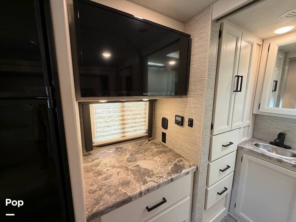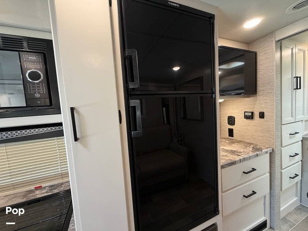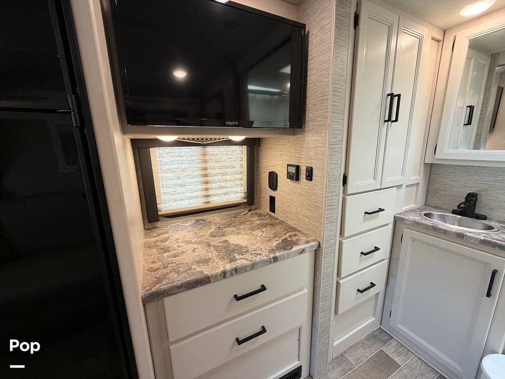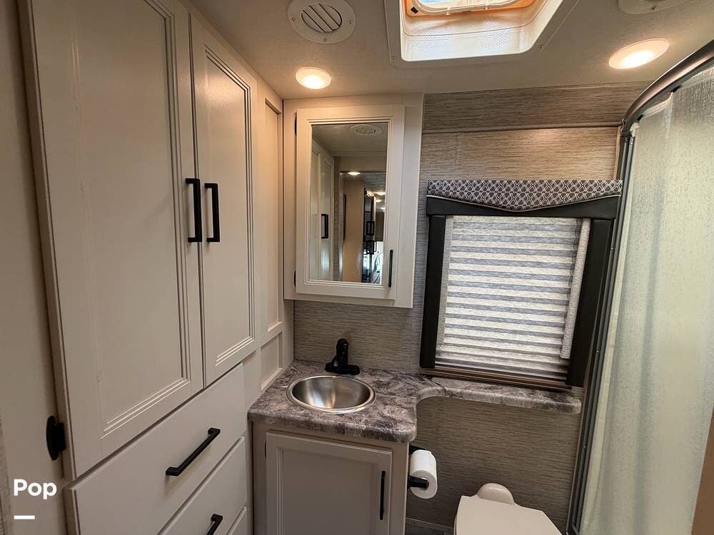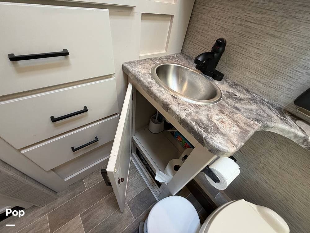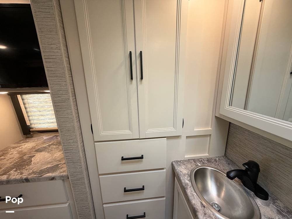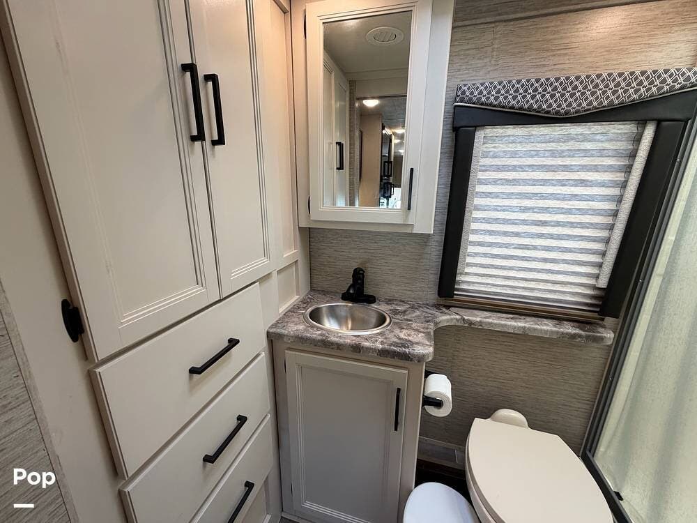 Enjoy the convenience of a full bathroom complete with a shower, toilet, and sink. The elegant design and premium fixtures elevate your RVing experience.