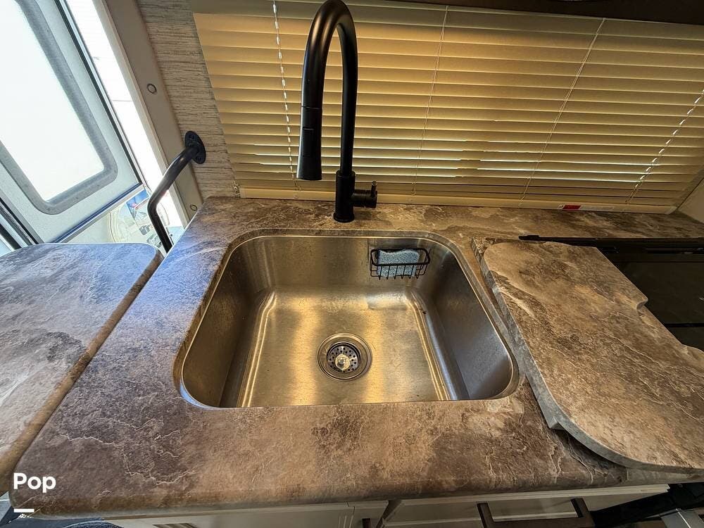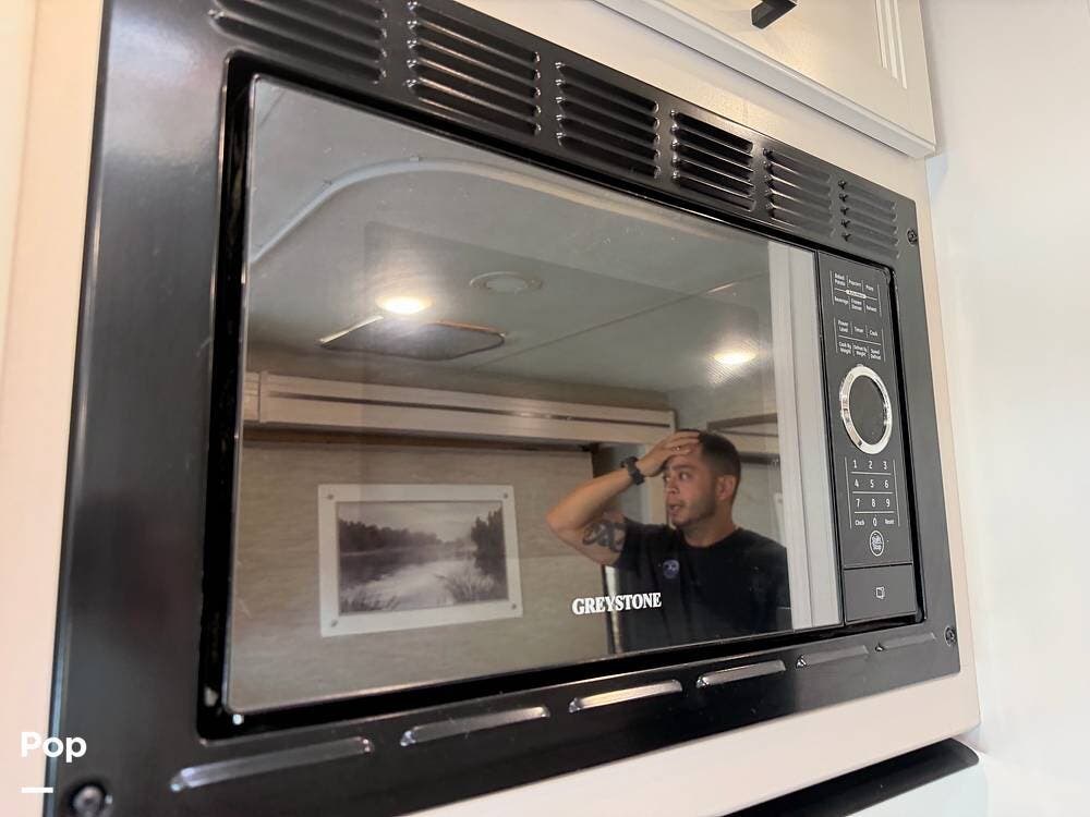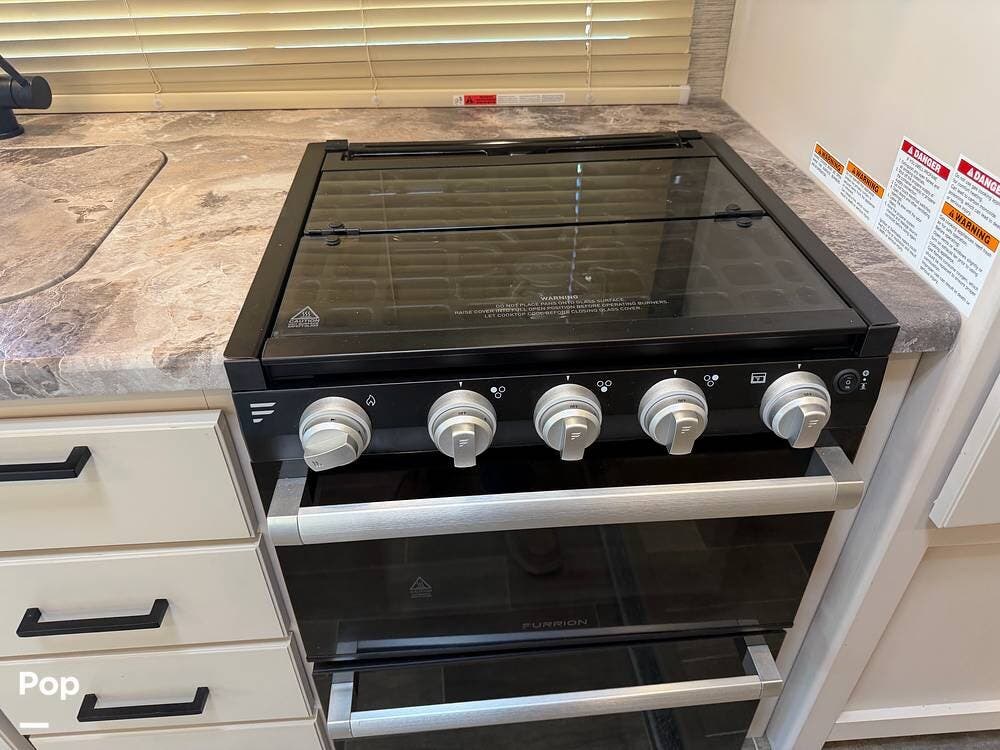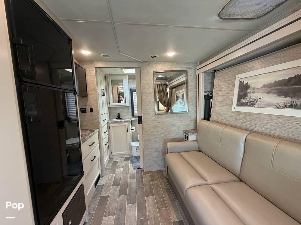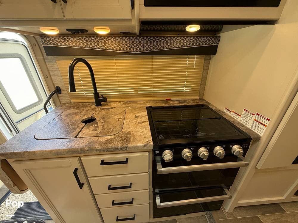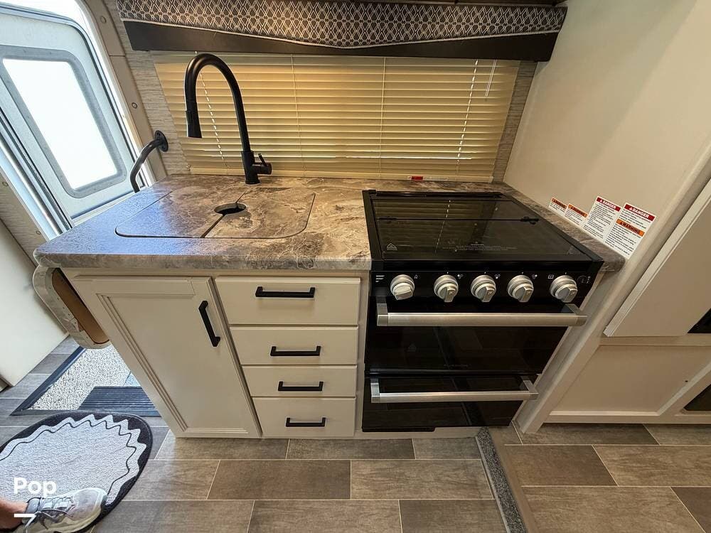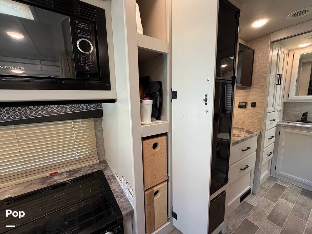 Enjoy the convenience of a full bathroom complete with a shower, toilet, and sink. The elegant design and premium fixtures elevate your RVing experience.