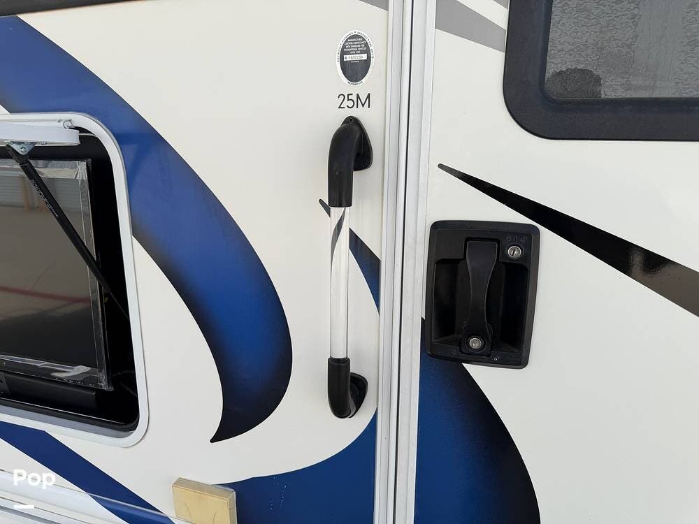 The CHATEAU 25M offers a well-designed layout that maximizes living space. It features a slide-out room that expands the interior, providing ample room for relaxing and entertaining. Has a Slide-out Topper.