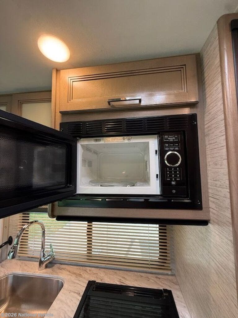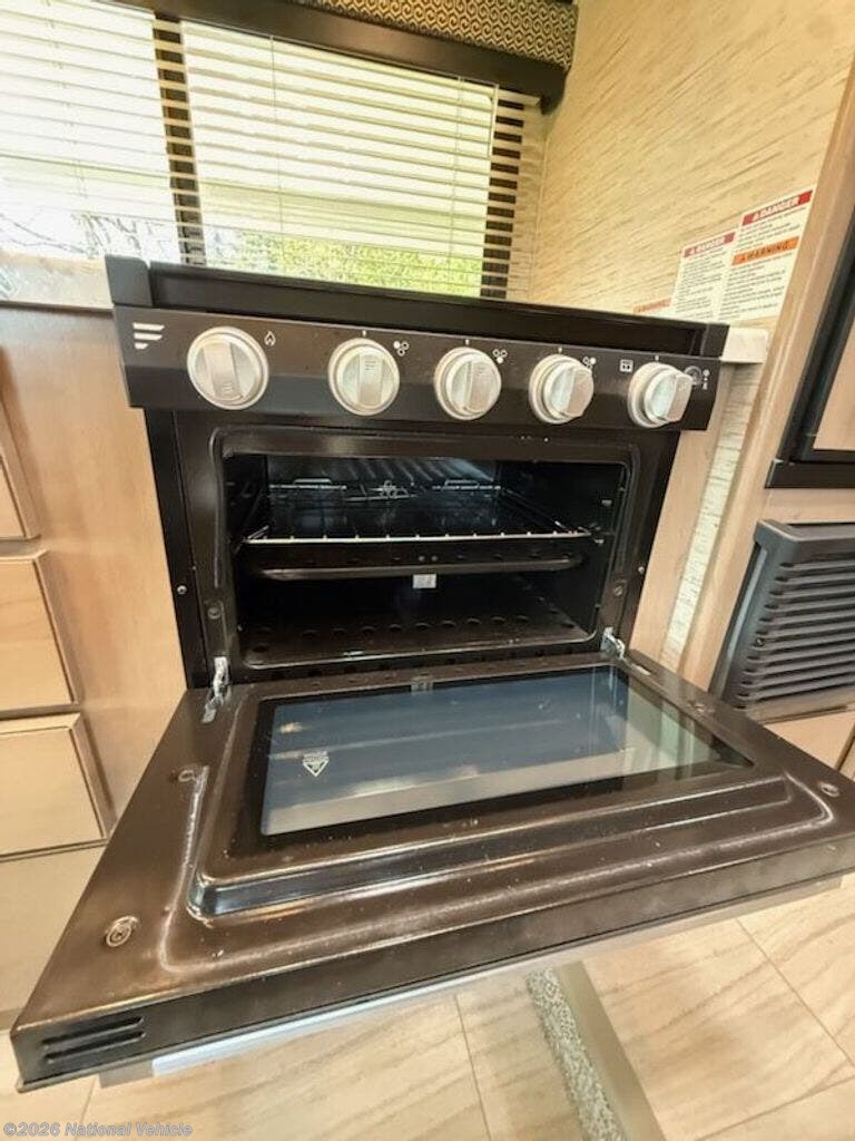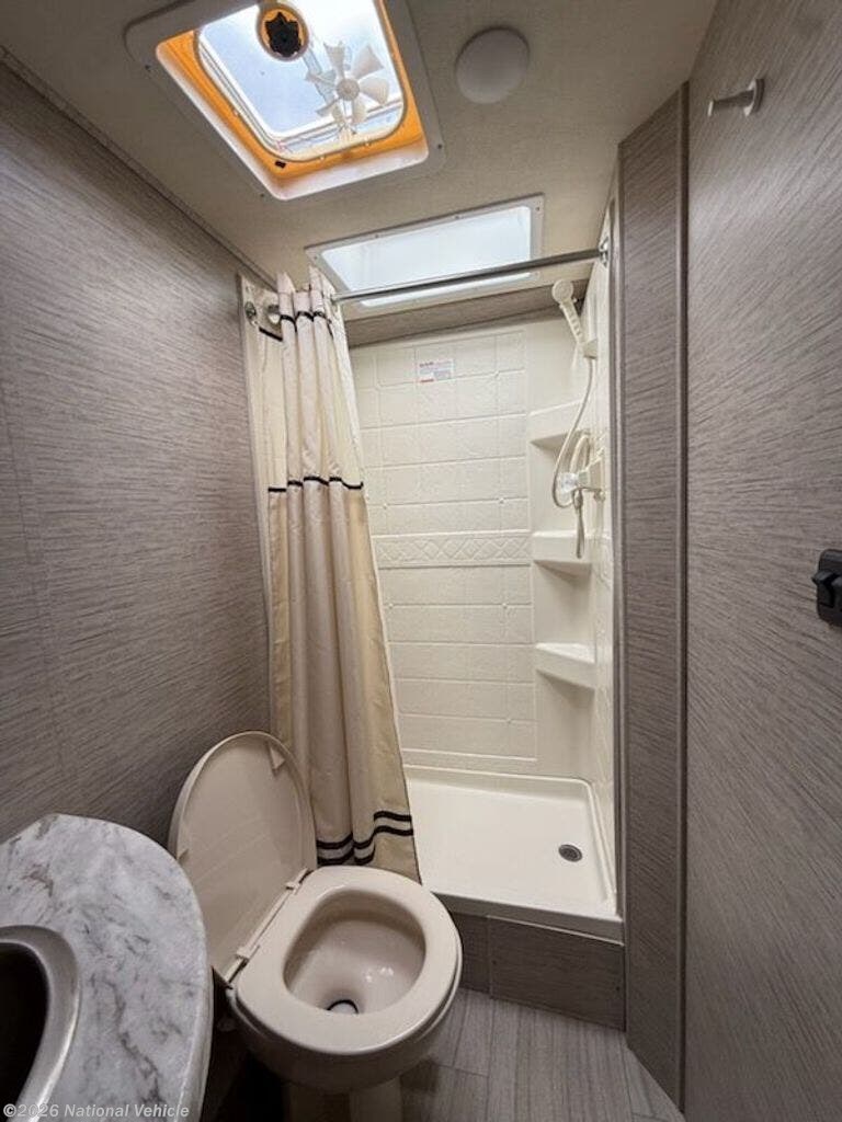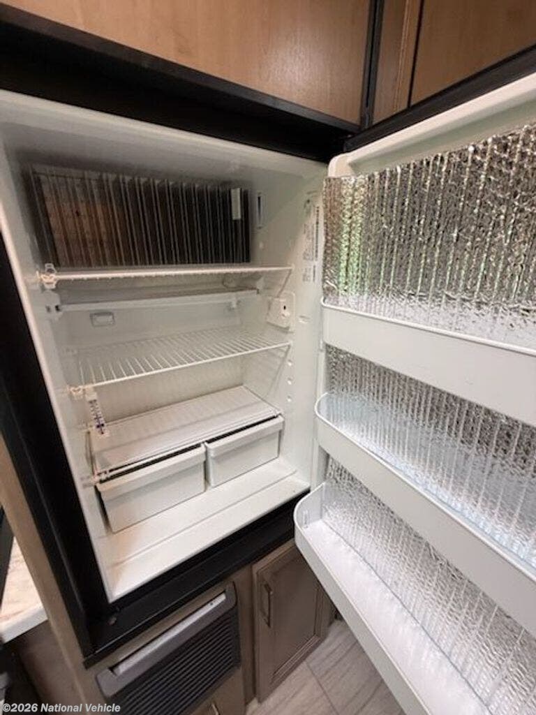 Inside, you?ll find a versatile living area with a booth dinette and cab-over bunk for added sleeping space. The fully equipped kitchen includes a cooktop, microwave, refrigerator, and ample storage?everything you need to prepare meals on the go.