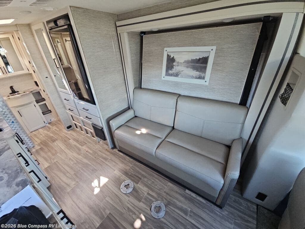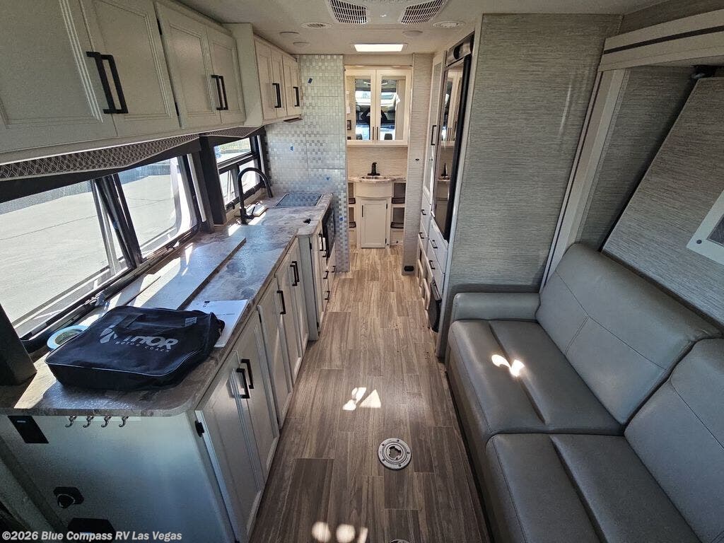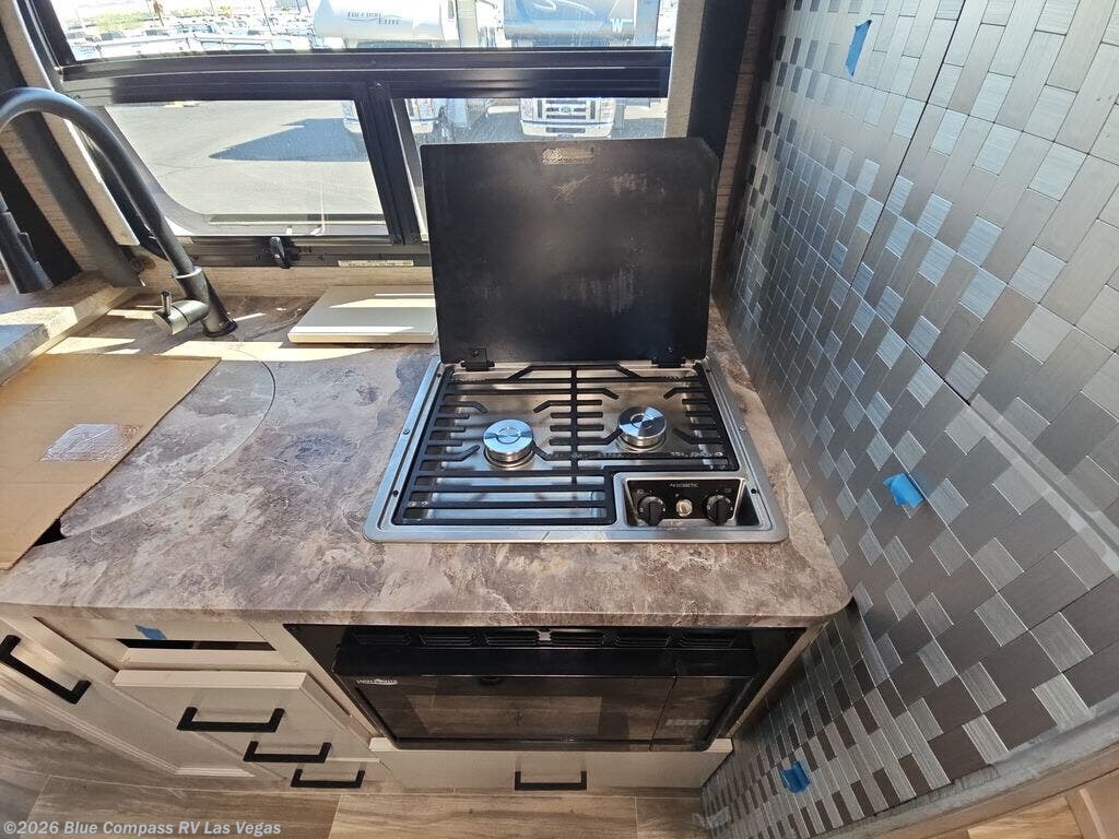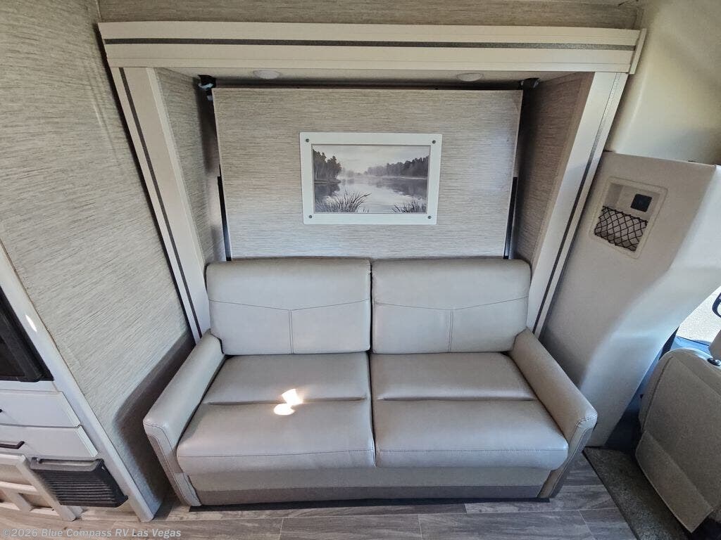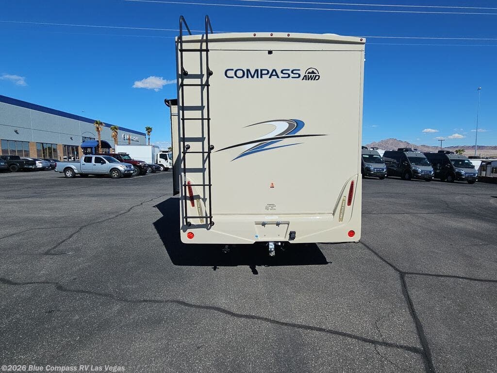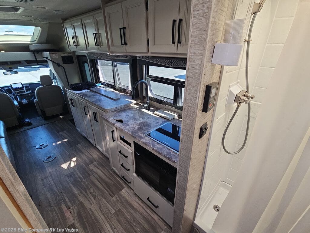 It's time to see the country with this Compass Class B+ gas motorhome! You will enjoy plenty of comfort in this compact coach with the 24" x 36" shower, skylight, and linen closet in the rear bathroom, and the kitchen will be super helpful with its convection microwave, two-burner gas cooktop, large undermount sink, and powered ceiling vent. One of the best features of this coach is the 60" x 74" Murphy bed because it gives you flexibility by allowing you to reveal the sofa for lounging during the day, and since this bed rests upon the single slide, you will have extra walking space on the interior.