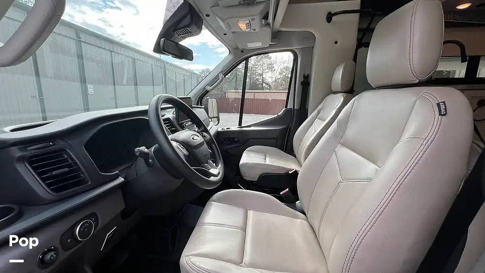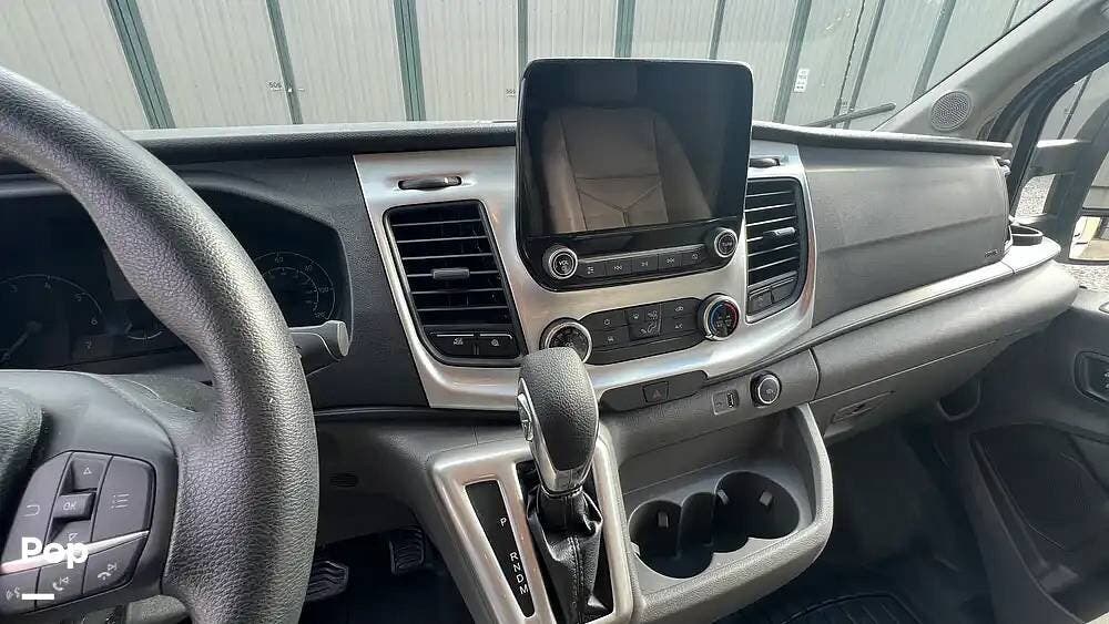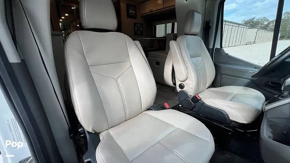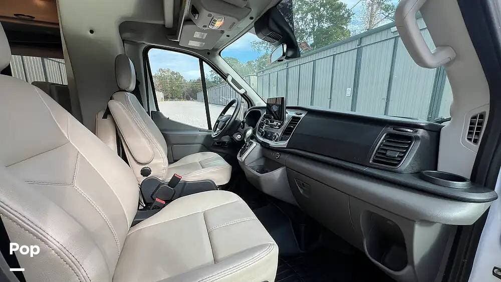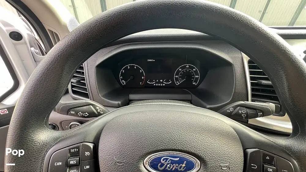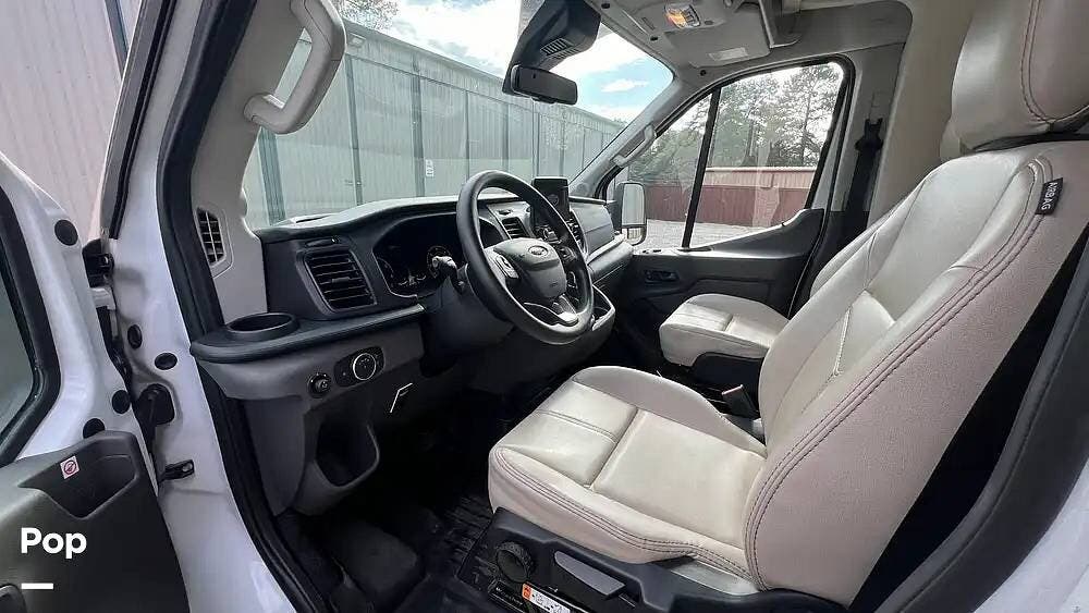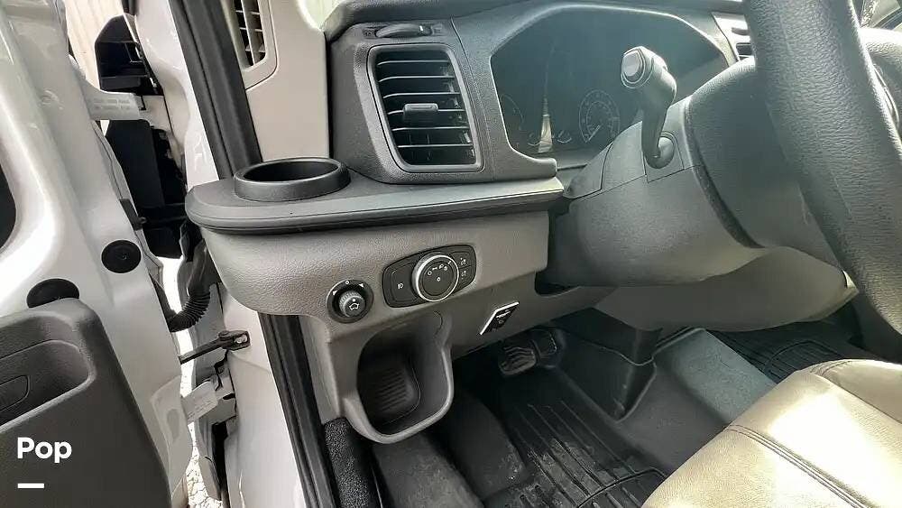 The cockpit features leatherette captain chairs, swivel, and power windows and door locks. There is a dash stereo with SYNC3, Navigation, Sirius Tuner, an Antenna, and an 8" Color Multi-Function Display.