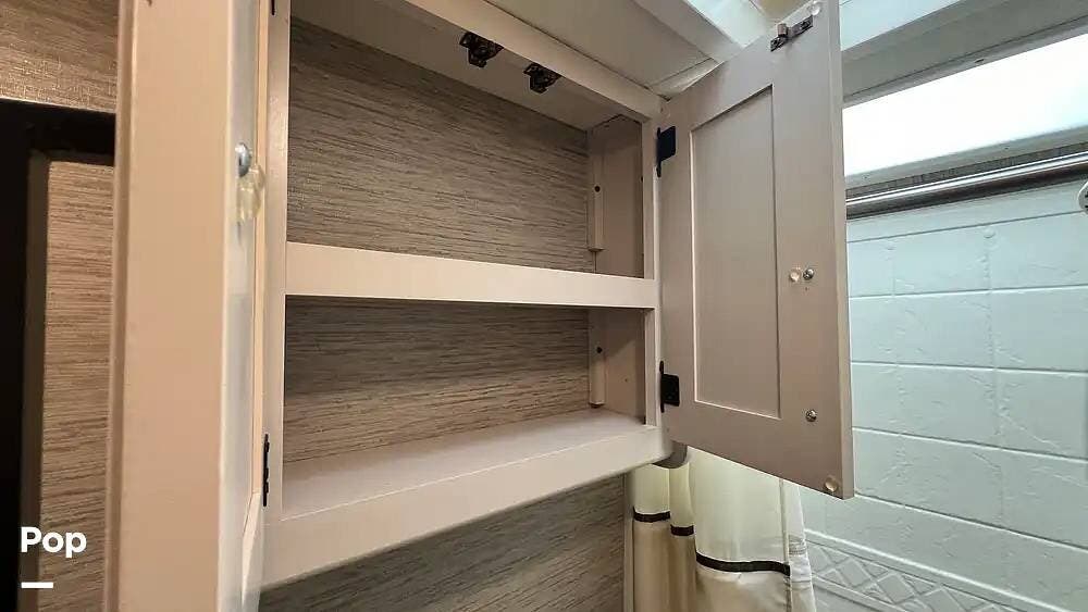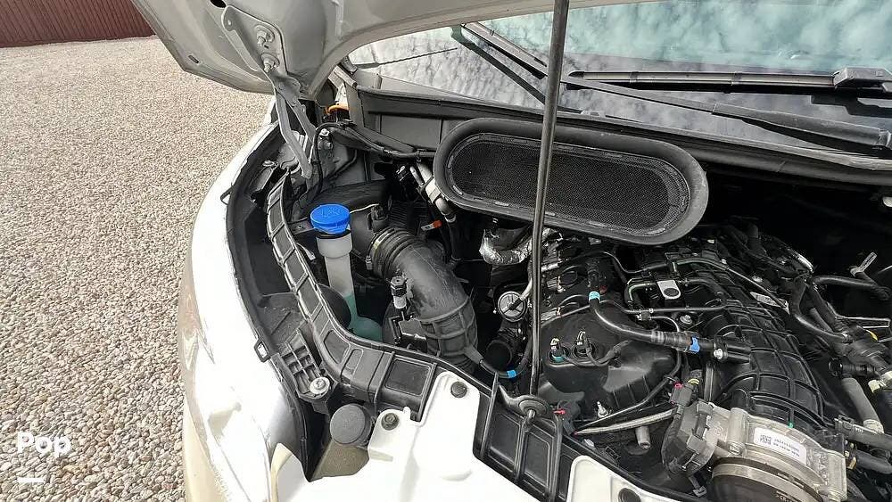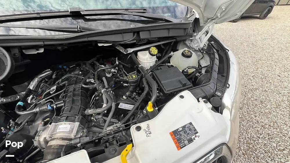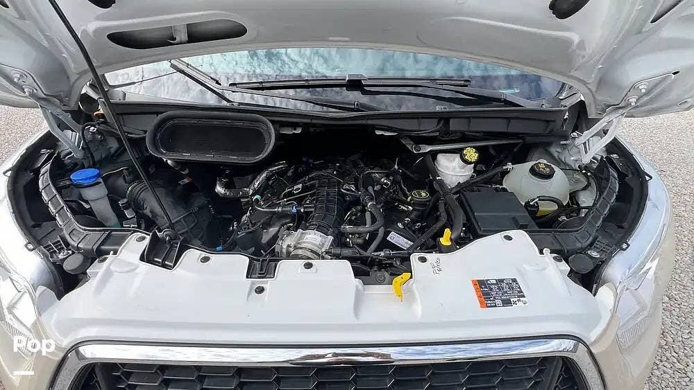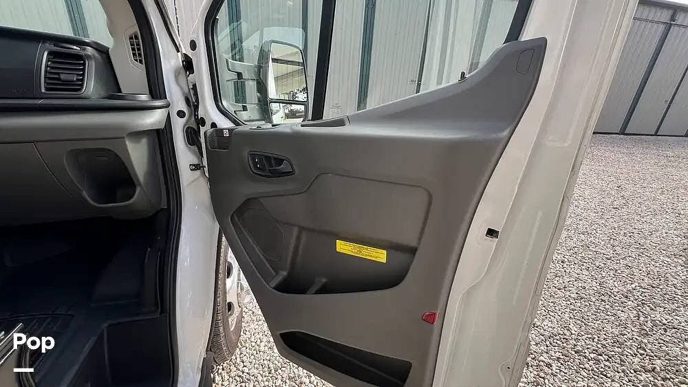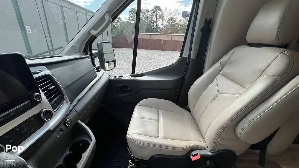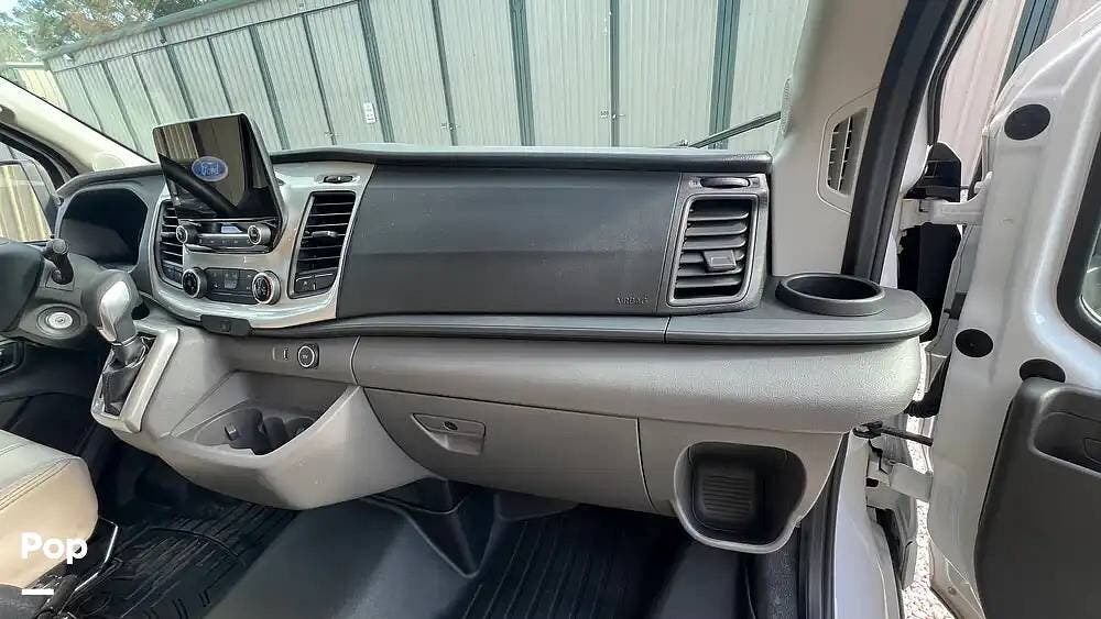 The cockpit features leatherette captain chairs, swivel, and power windows and door locks. There is a dash stereo with SYNC3, Navigation, Sirius Tuner, an Antenna, and an 8" Color Multi-Function Display.