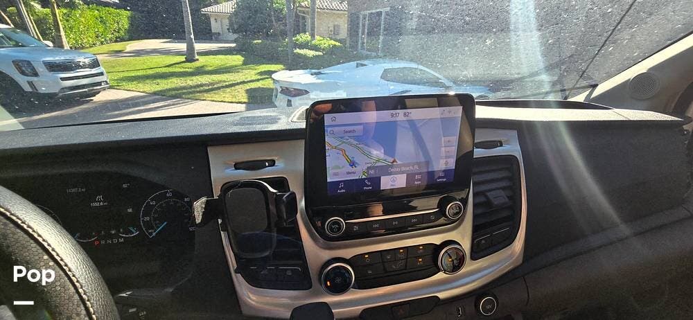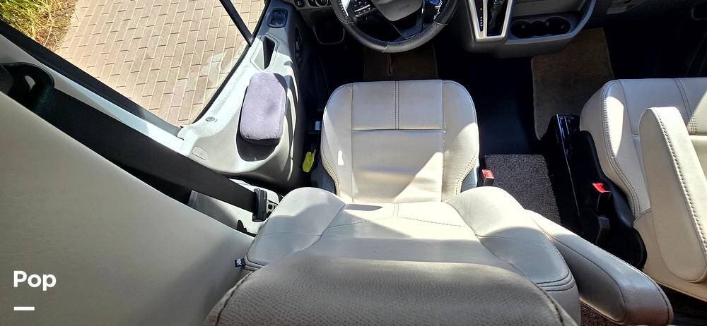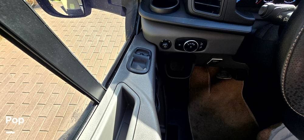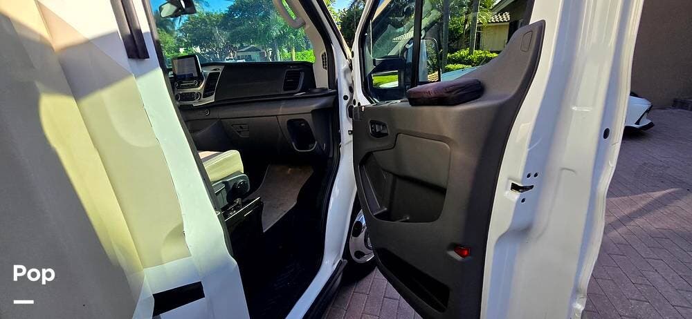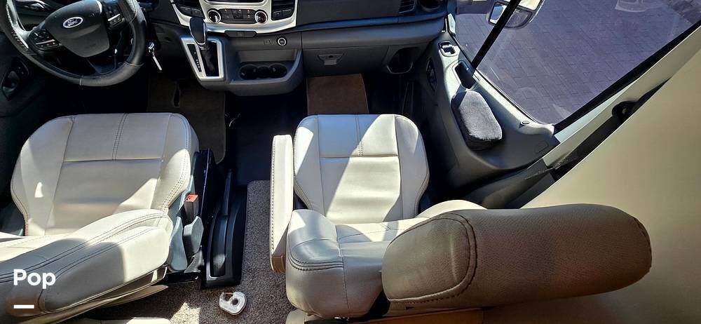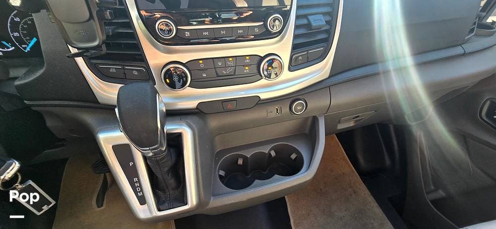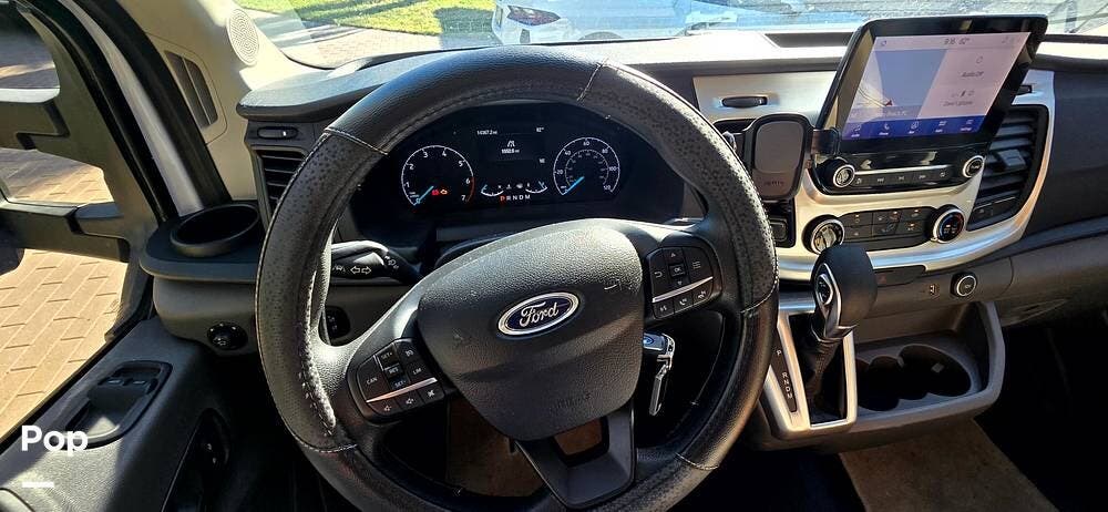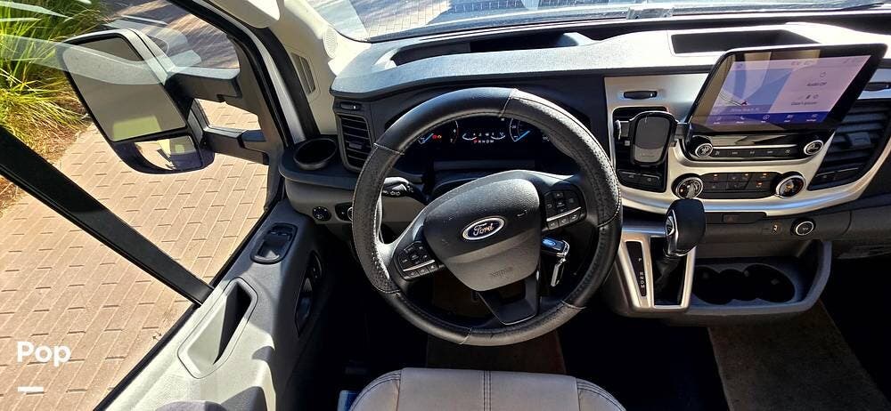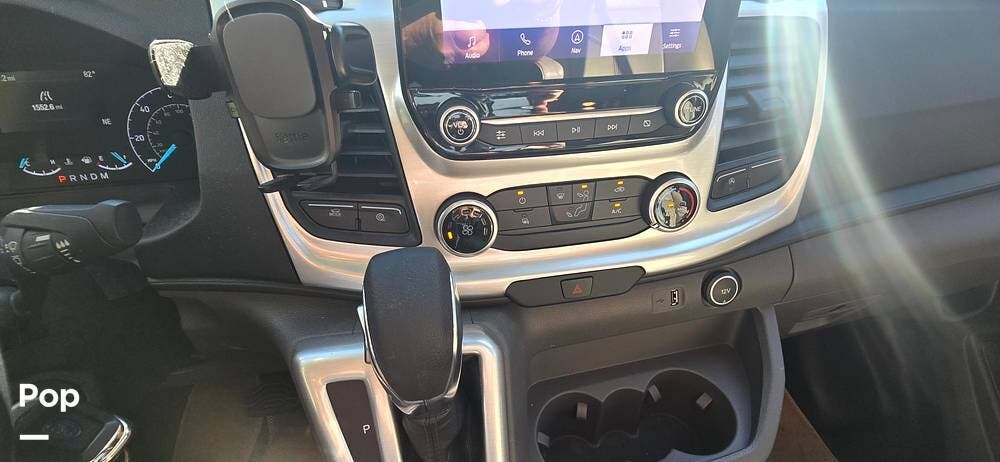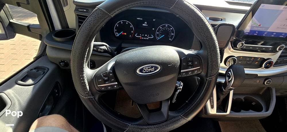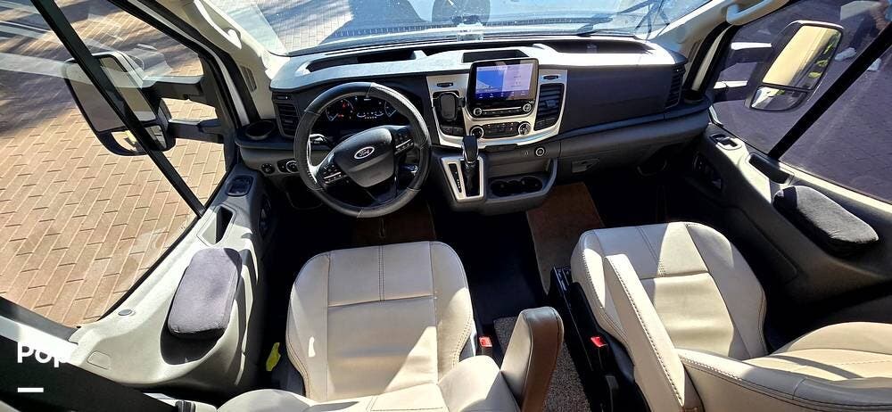 Step inside the Ford Transit cab, and you'll find a cockpit designed for both comfort and control. The power-adjustable, heated captain's chairs swivel to join the living area when parked. The dash features a Ford SYNC 3, 8" touchscreen infotainment system with navigation, Bluetooth, Apple CarPlay, and Android Auto integration.