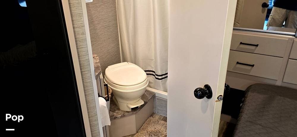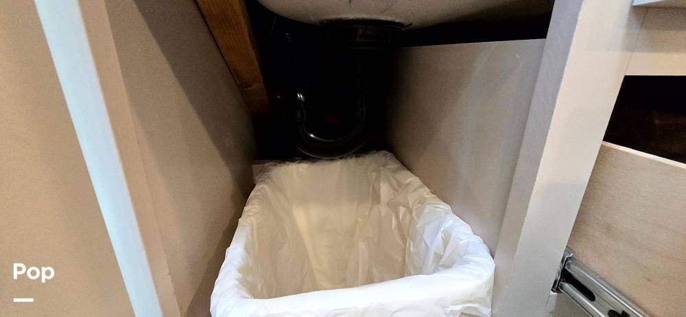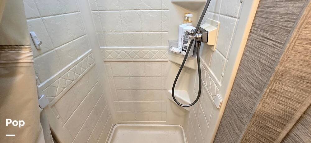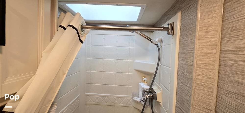 The full rear bath features a porcelain foot-flush toilet, stainless-steel sink, and a shower with skylight, providing both function and comfort. Additional amenities include a power-vent fan, linen storage, a medicine cabinet, and durable wall surrounds, ensuring your bathroom remains bright and easy to maintain.