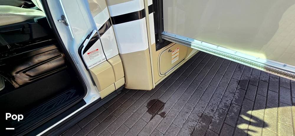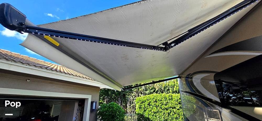 For outdoor comfort, it includes a Power Patio Awning with Integrated LED Lighting, creating the perfect space for relaxing at night, as well as a slide-out room-topper awning to protect the living space extension from debris and moisture.