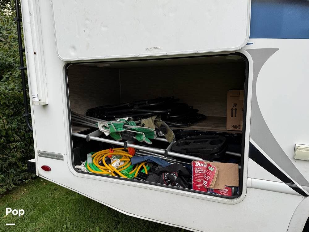 For entertainment, the motorhome comes with a 40-inch LED TV mounted in the living area, perfect for relaxing after a day of exploring. There are indoor and outdoor speakers to extend entertainment options. There are USB charging ports throughout the RV, you'll stay connected and powered up during your travels.