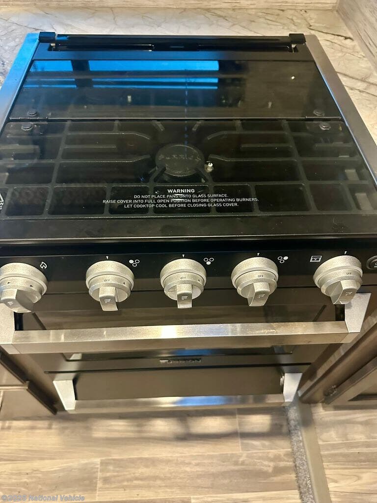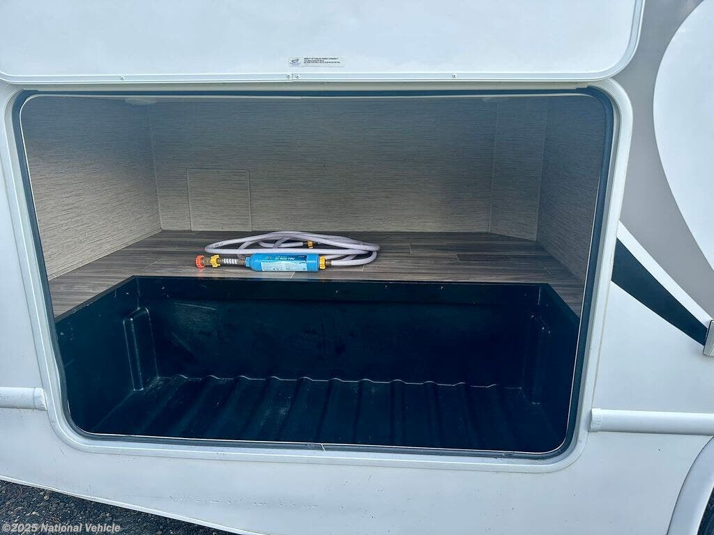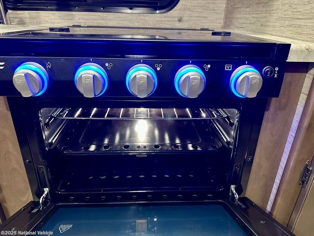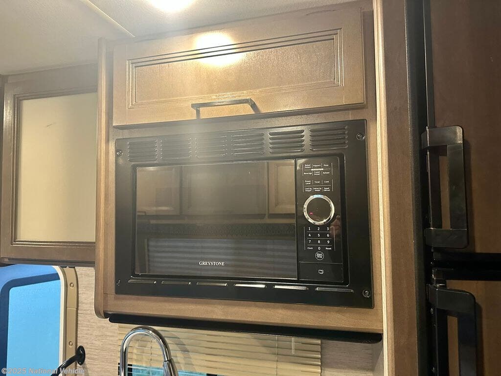 Inside, the rear queen bed provides a restful retreat, complete with overhead cabinets and nightstands. The corner bathroom features a walk-in shower and practical layout, while the fully equipped kitchen includes a 3-burner cooktop, microwave, refrigerator, and ample counter space?making it easy to cook your favorite meals on the road. Outside, a power awning, large storage compartments, and solar-ready capabilities make outdoor living comfortable and convenient.