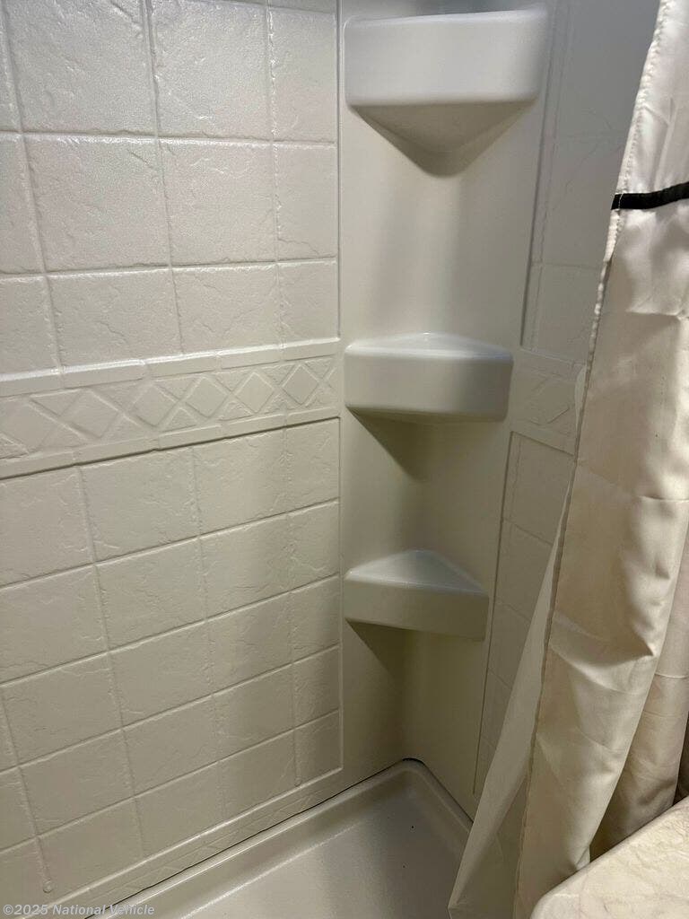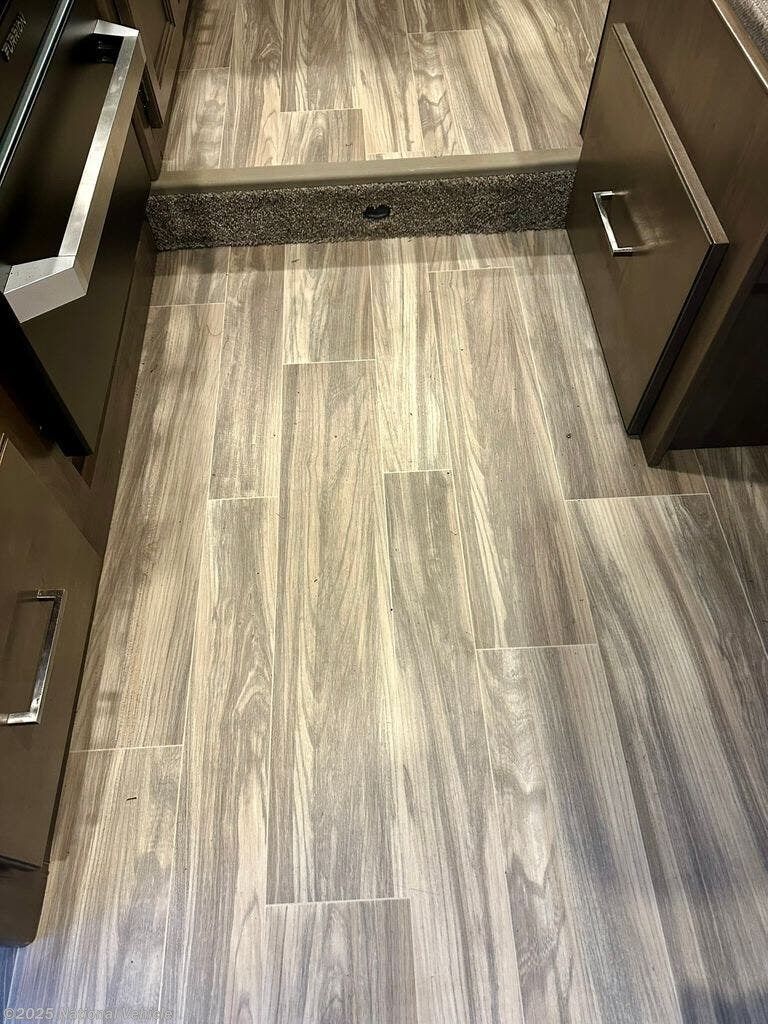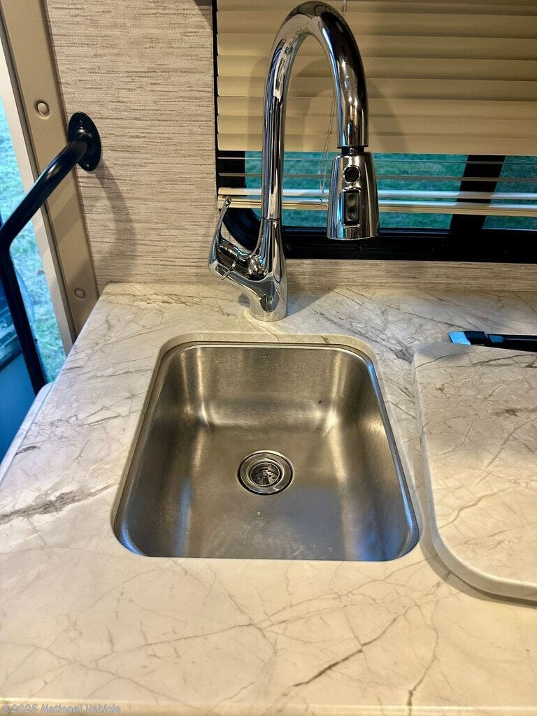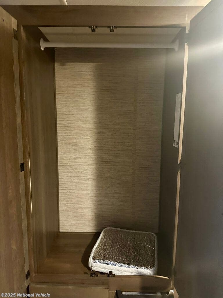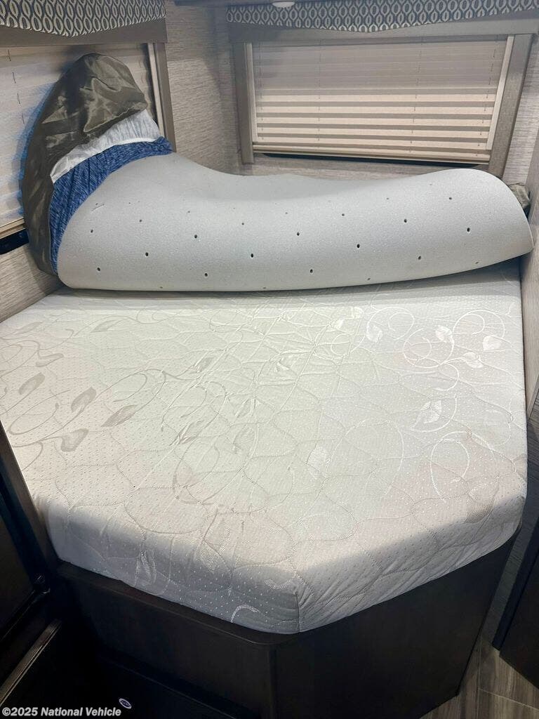 Inside, the rear queen bed provides a restful retreat, complete with overhead cabinets and nightstands. The corner bathroom features a walk-in shower and practical layout, while the fully equipped kitchen includes a 3-burner cooktop, microwave, refrigerator, and ample counter space?making it easy to cook your favorite meals on the road. Outside, a power awning, large storage compartments, and solar-ready capabilities make outdoor living comfortable and convenient.