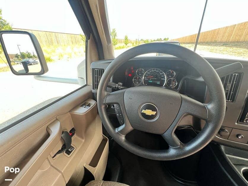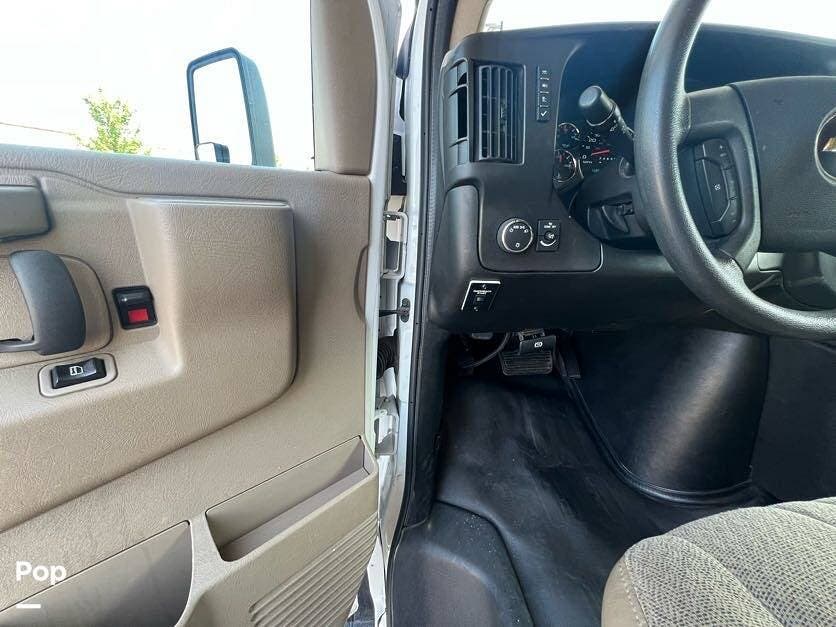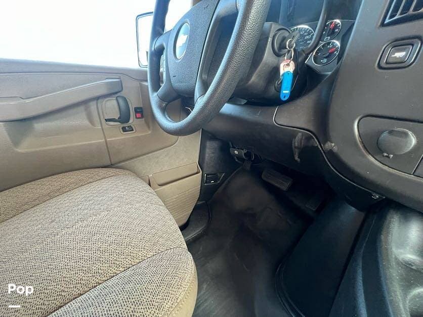 Built on a dependable Chevy Chassis with a strong V8 engine, it handles highways, backroads, and campsites with confidence. Inside, the layout is smart and functional: a rear queen bed, a convertible dinette, and a roomy over-cab bunk make sleeping arrangements simple and flexible.