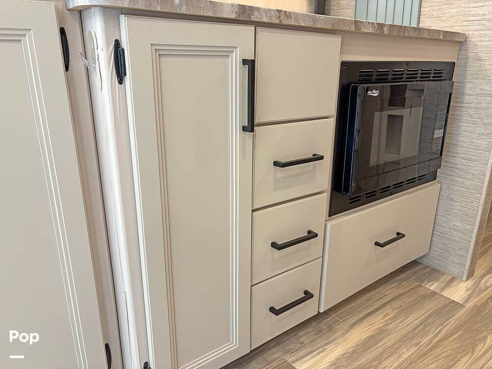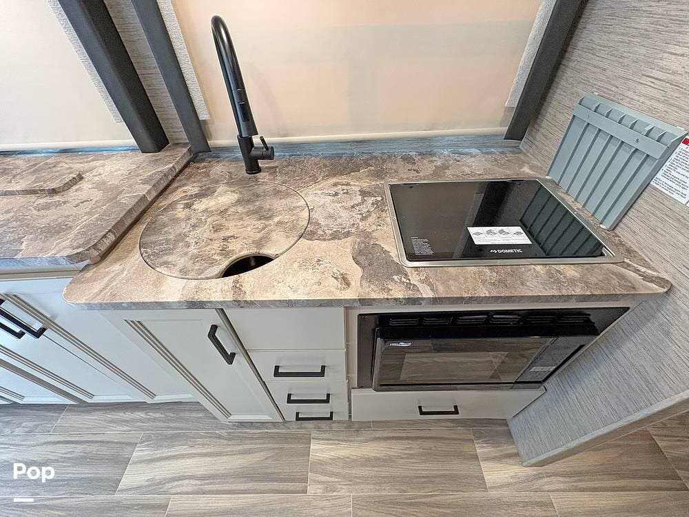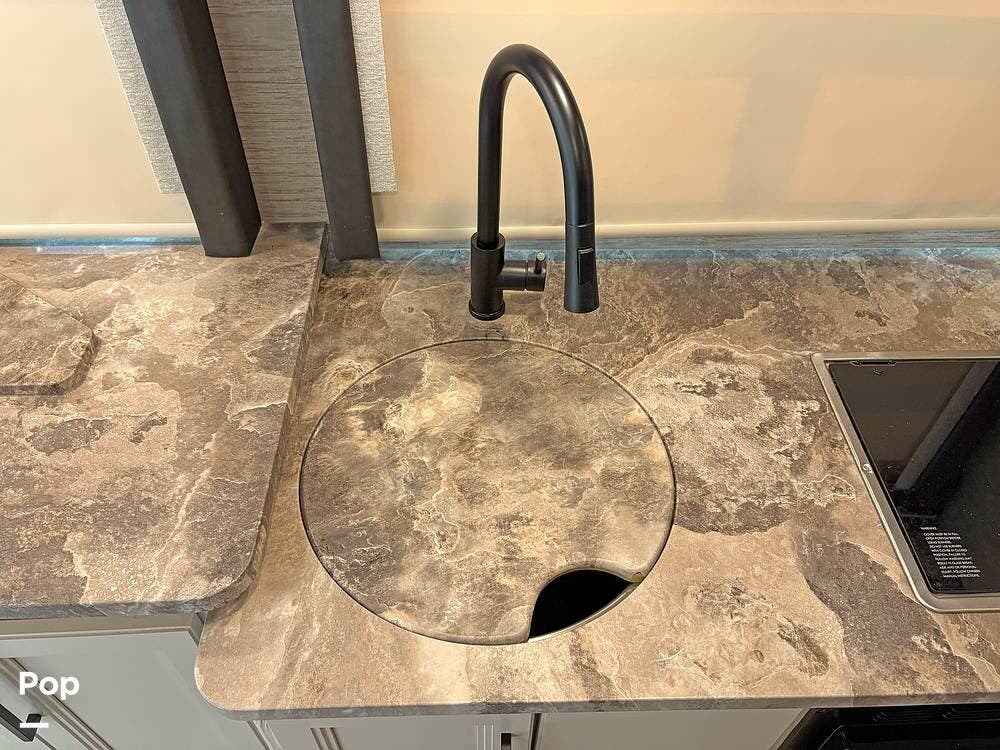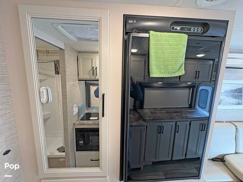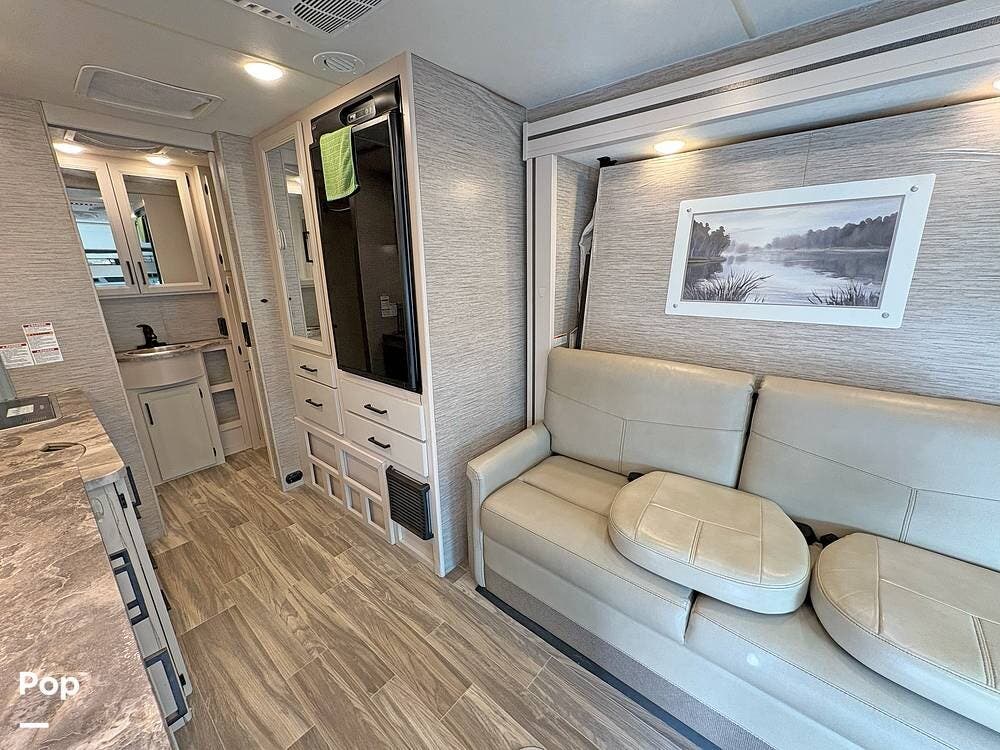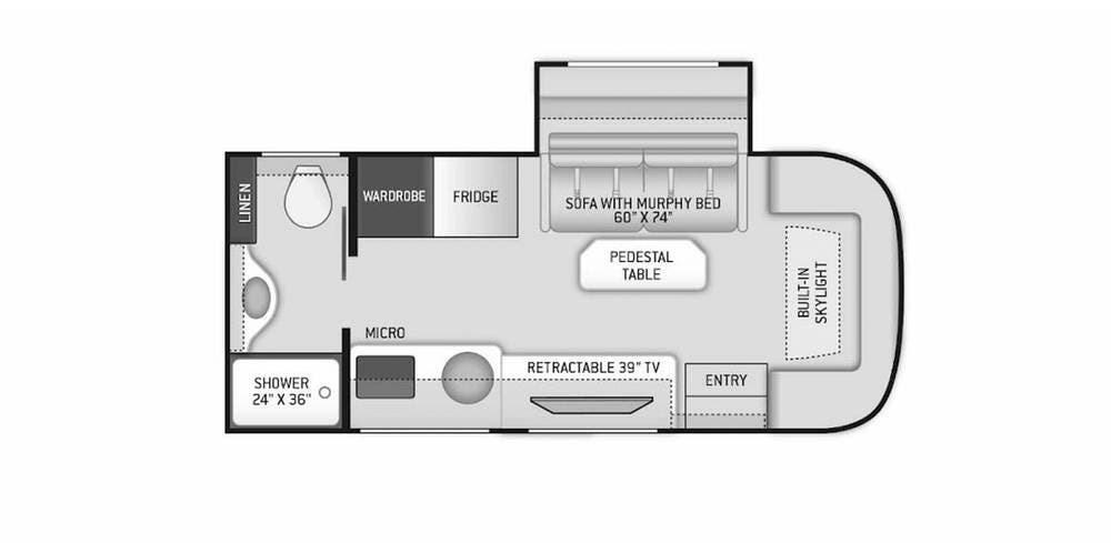 Step inside to a stylish interior that will keep you happy day and night. With a sofa and tucked-away Murphy Bed, along with a retractable TV, you can relax after a day's drive to great shows and entertainment.