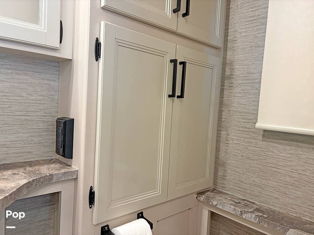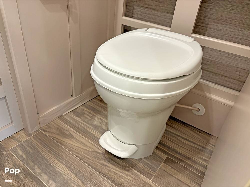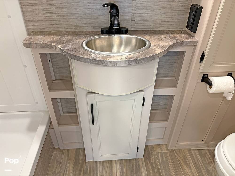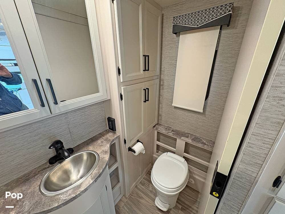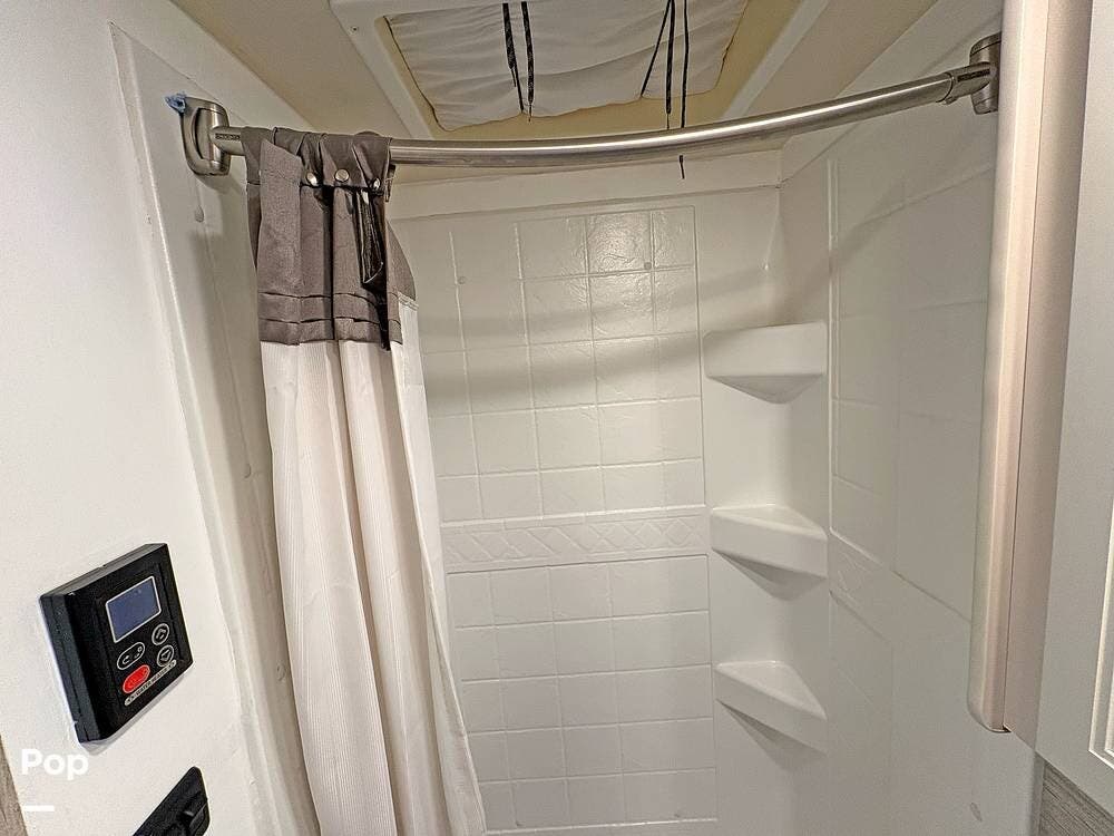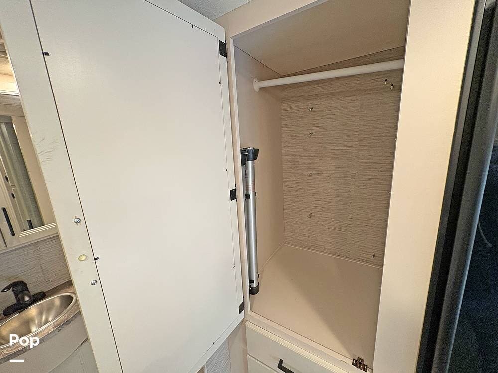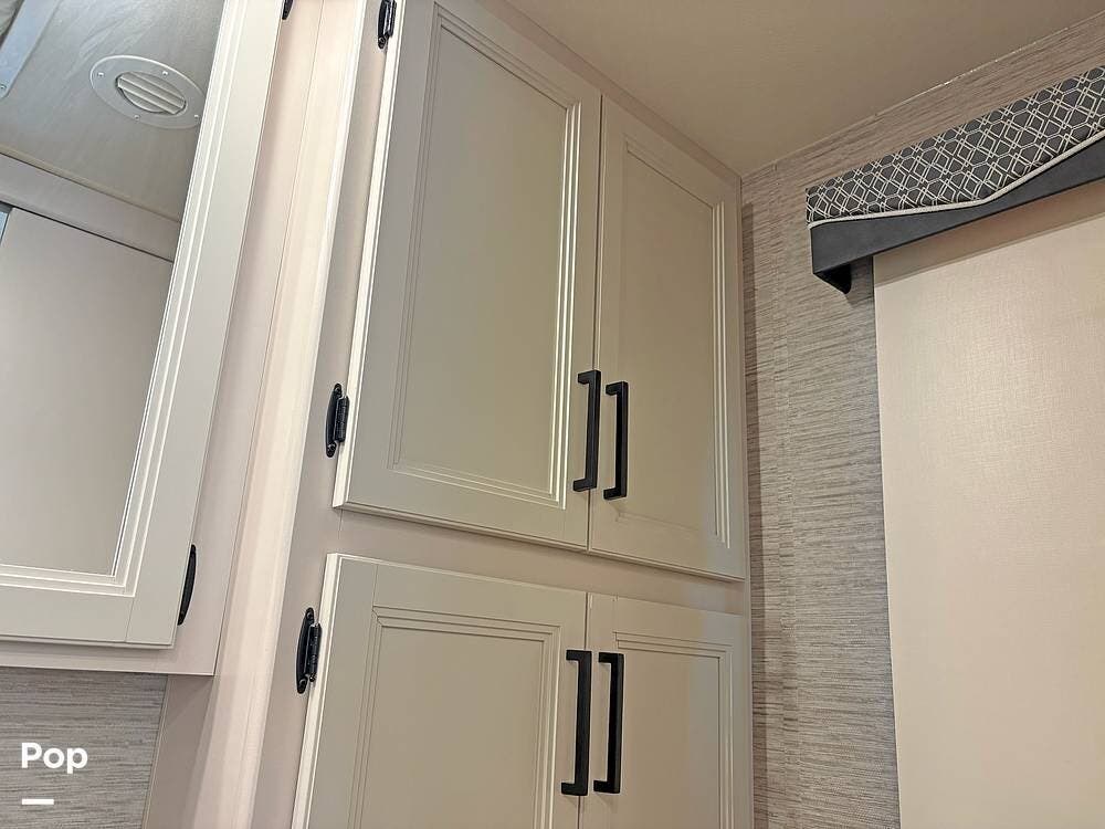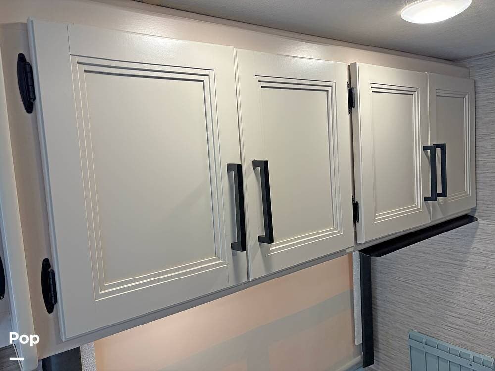 The bathroom and closet are at the rear of the RV. You'll find plenty of inside storage, too, plus conveniences like USB ports and outlets.