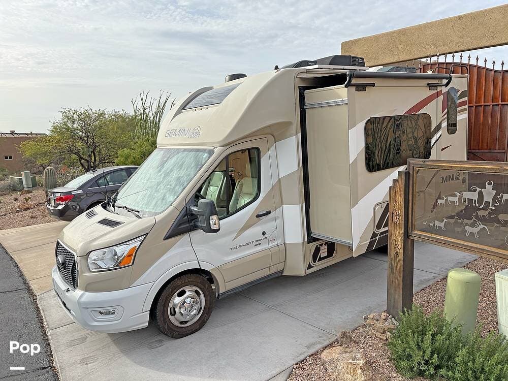 Compact, classy, and barely used -- this 2021 Gemini 23TE Class C RV is the perfect ride for a couple looking for amazing adventures together. Small enough to maneuver just about anywhere you need to go, plus all-wheel drive to make the driving all that much easier.