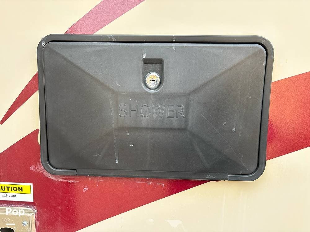 On the outside, enjoy the wide awning (with LED lights), abundant storage, and shower. With a generator and solar panel, you are sure to have the power you need whether you're at an RV park out out boon docking in the woods.