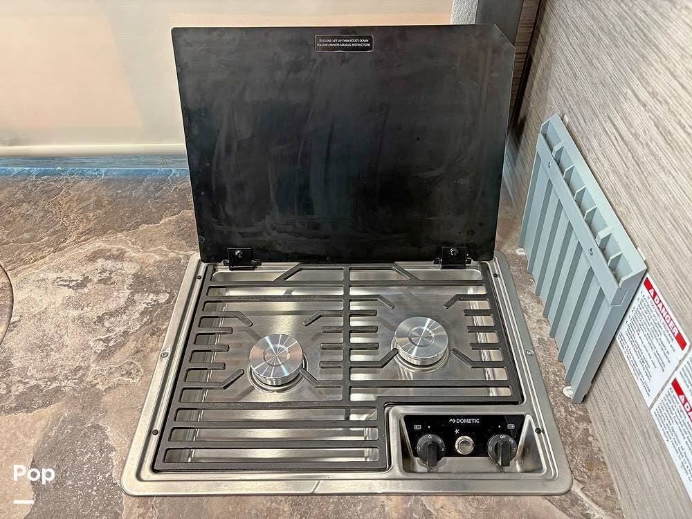 Don't forget the meals, though! With a 2-burner stove, microwave oven, and mid-size refrigerator and freezer, cooking is done in a snap.