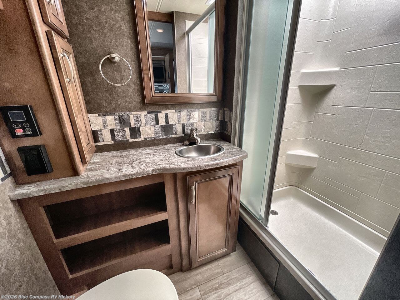 When you're ready to upgrade your RV, choose this Magnitude coach for a truly comfortable unit, and the driver is sure to love the four wheel drive. After you've arrived at your destination you can prepare lunch on the two burner induction cooktop or make something quick in the convection microwave. The kids can climb up into the cab-over bunk sleeping area and watch a movie on the 39" LED TV that also swivels for when the whole family wants to watch a show. This unit includes a rear bedroom with a Tilt-A-View inclining king bed and 32" TV, and the full bath is ready when you are since the tankless water heater provides hot water where ever you go.