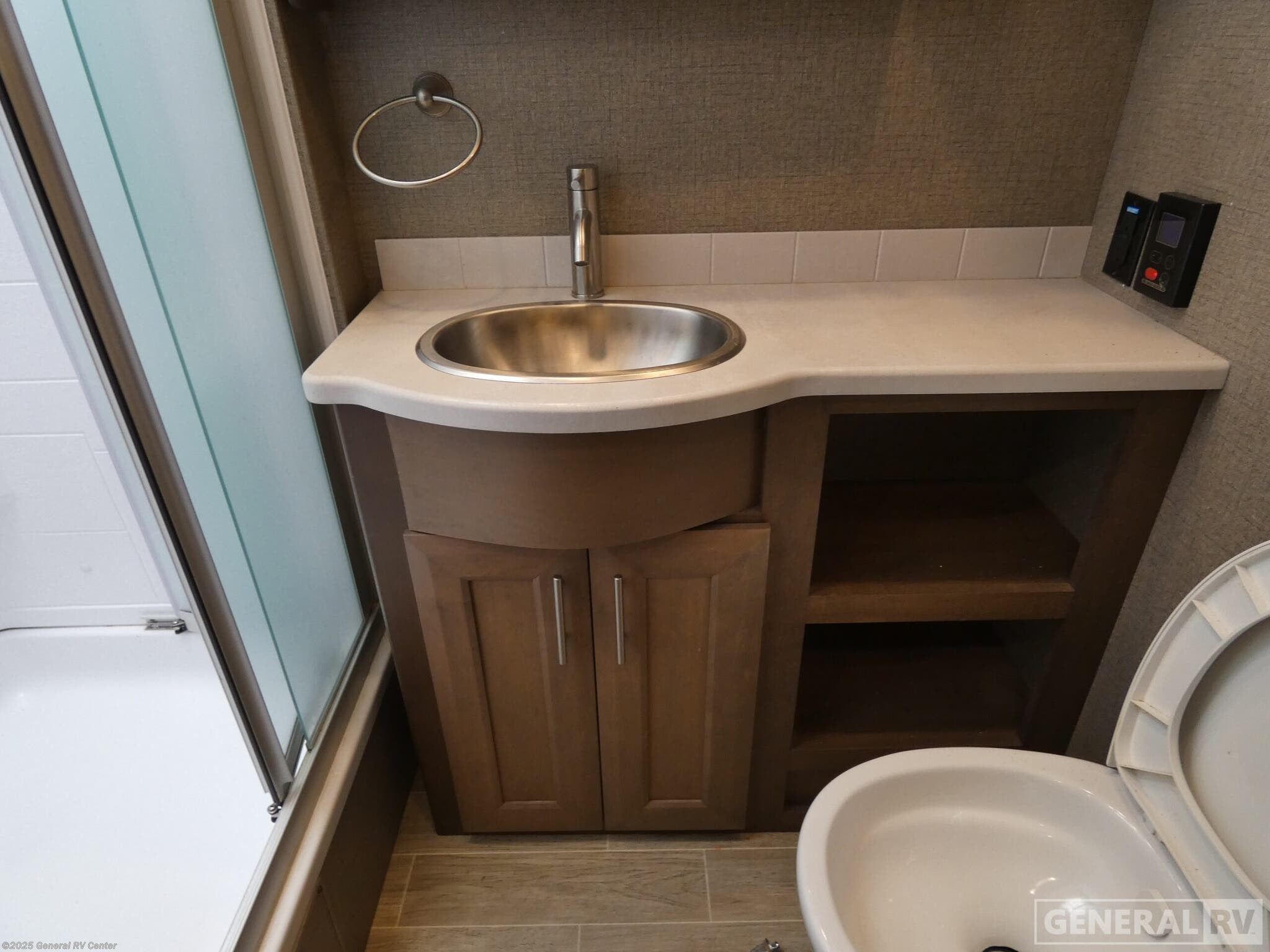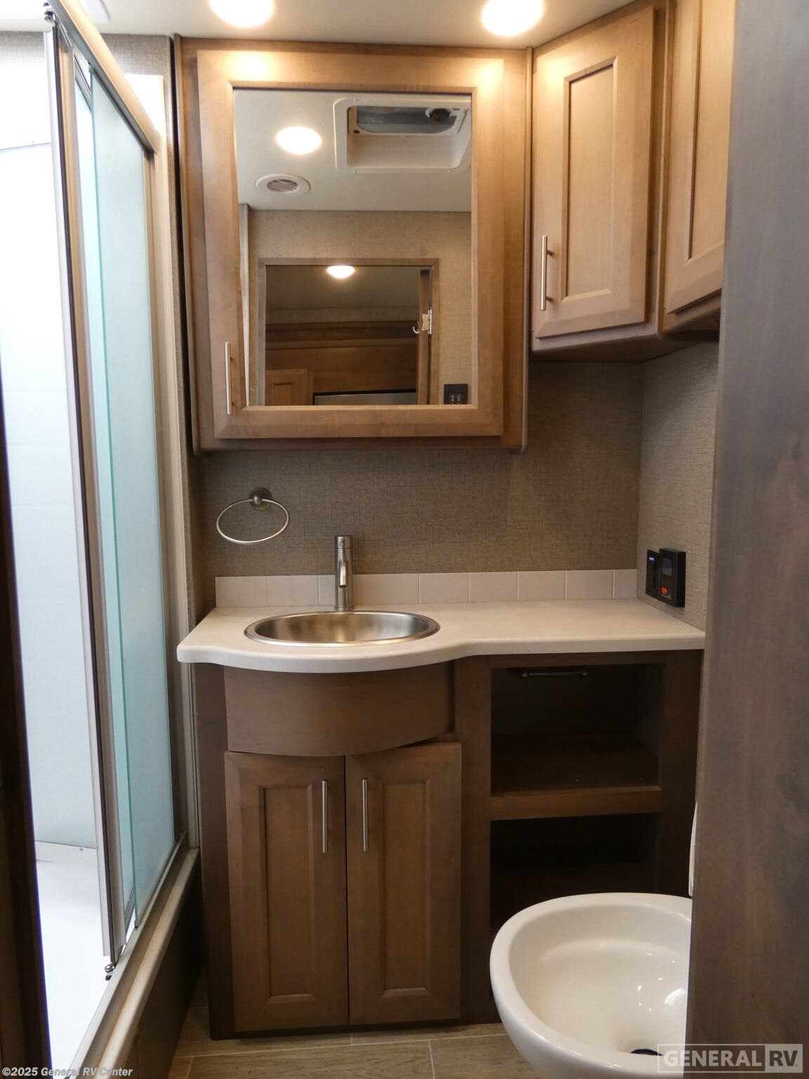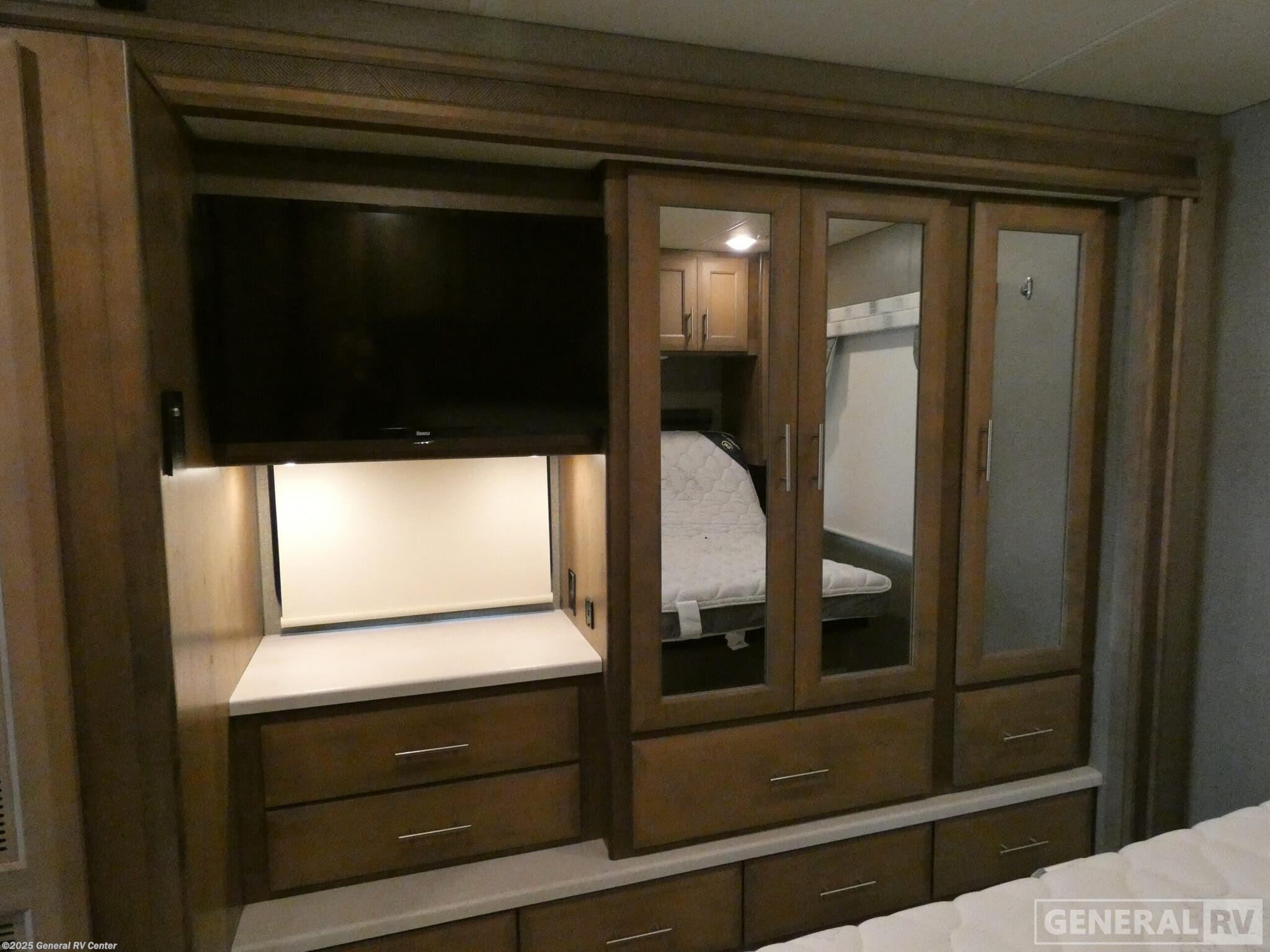 Experience the open road like never before with the 2021 Thor Motor Coach Miramar 35.2. This luxurious motorhome is designed to be your home away from home, offering ample space and comfort for up to eight adventurers. The master suite boasts a Tilt-A-View inclining king bed, ensuring restful nights after a day of exploration. The spacious living area features a 68" sofa bed and a 70" dream dinette, perfect for relaxing or entertaining guests. The drop-down overhead bunk adds versatility, providing additional sleeping space without compromising on style or comfort. The Miramar 35.2 is equipped with a modern center kitchen, complete with a full-size refrigerator and convection cooking, making meal preparation a breeze. The theater seating invites you to unwind with a movie night on the retractable 49" LED TV. With a 20 ft. powered retractable awning, you can enjoy outdoor gatherings, rain or shine. Built on a robust Ford F-Series Super Duty chassis and powered by a Triton V10 engine, this RV delivers both power and reliability, ensuring smooth travels wherever the road takes you. For more details, visit your nearest General RV dealership and start your journey today!