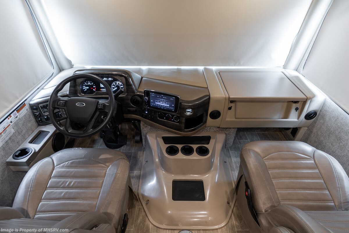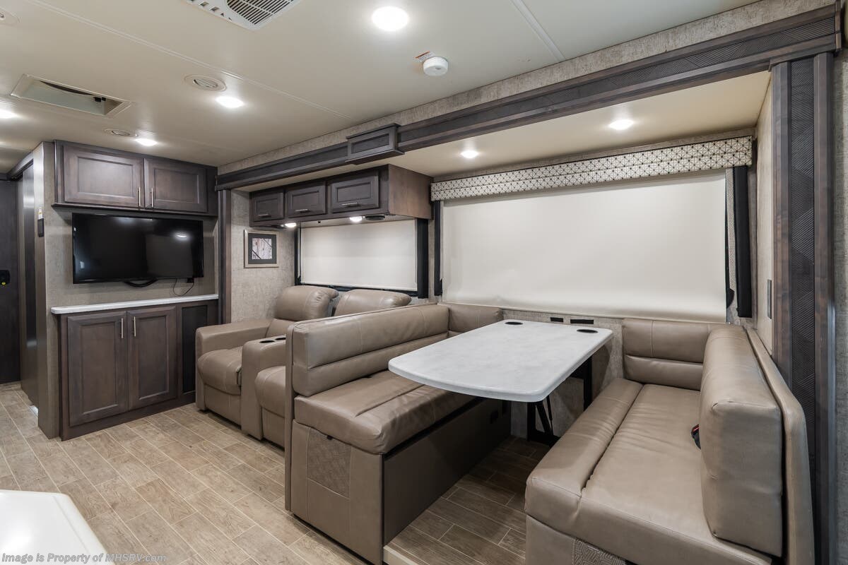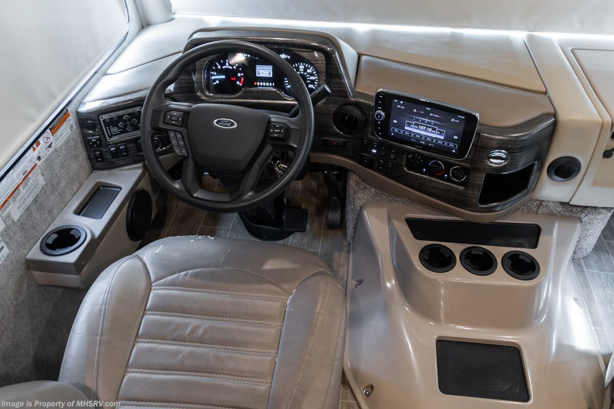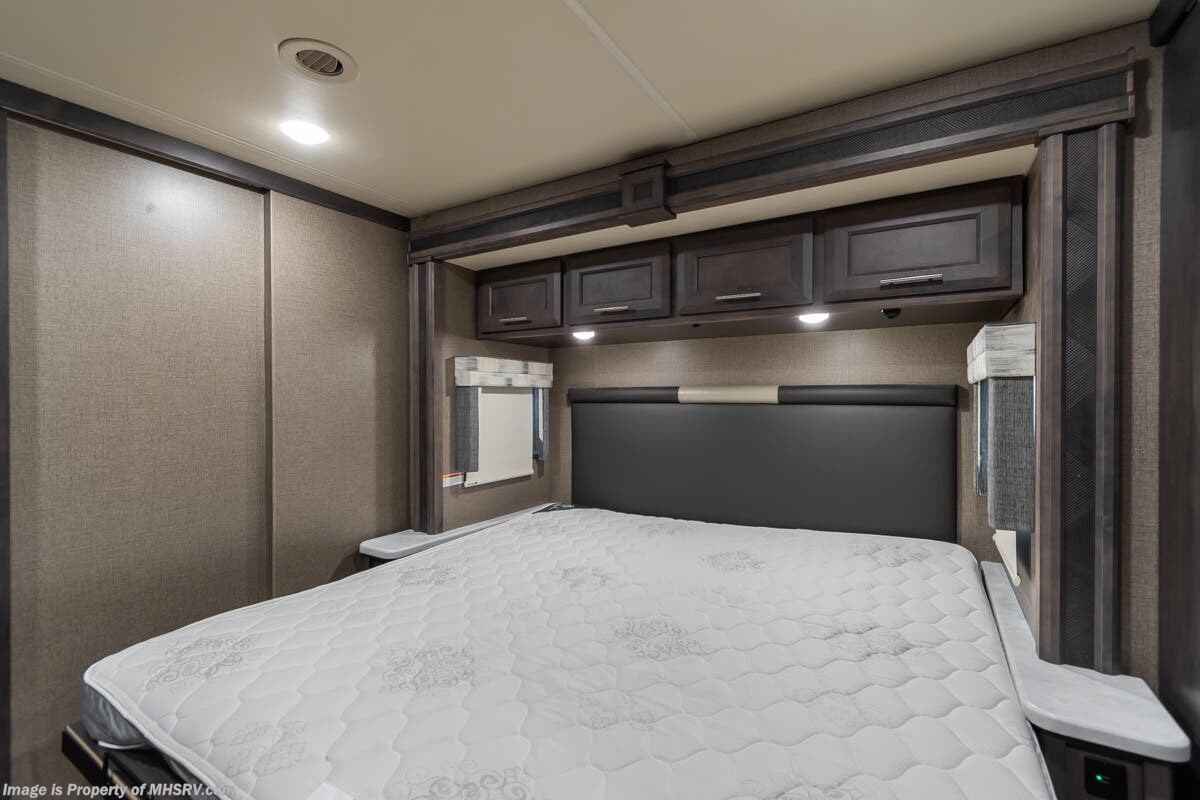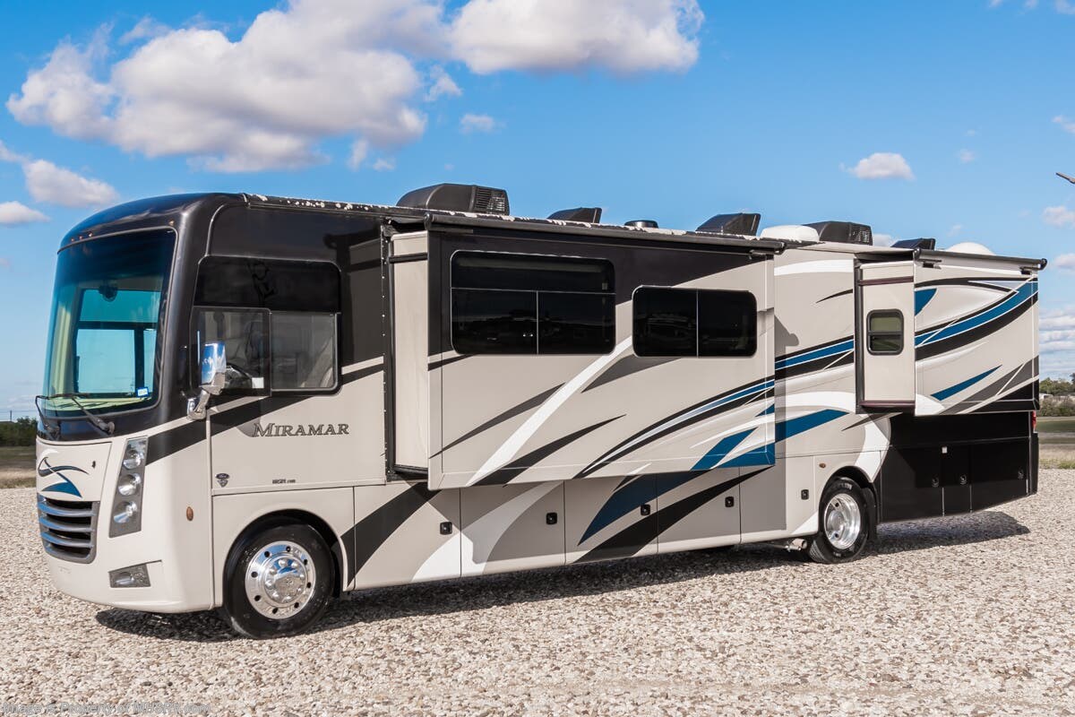 Used Thor Motor Coach RV for sale – 2021 Thor Motor Coach Miramar 37.1 is approximately 39’ 0” in length with 13,447 Miles, 3 slides and features ultra level hydraulic jacks, aluminum wheels, 3 camera system, gas generator, Ford V8 7.3L gas engine, Ford chassis, smart wheel, tilt/telescoping steering wheel, power visor, patio awning, pass through storage, docking lights, black tank flush, water filtration system, exterior shower, exterior TV, ladder, solar, inverter, leather seating, 7 foot ceiling, fireplace, hardwood cabinets, convection microwave, residential refrigerator, 3 burner gas range, King bed, bunk beds, 2 Full Bath, over head loft, theater seats and much more. For additional details on this unit and our entire inventory including brochures, window sticker, videos, photos, reviews & testimonials as well as additional information about Motor Home Specialist and our manufacturers please visit us at or call 800-335-6054 for our Texas location or 334-288-0331 for our Alabama location. At Motor Home Specialist, we DO NOT charge any prep or orientation fees like you will find at other dealerships. Read Thousands upon Thousands of 5-Star Reviews at and See What They Had to Say About Their Experience at Motor Home Specialist.