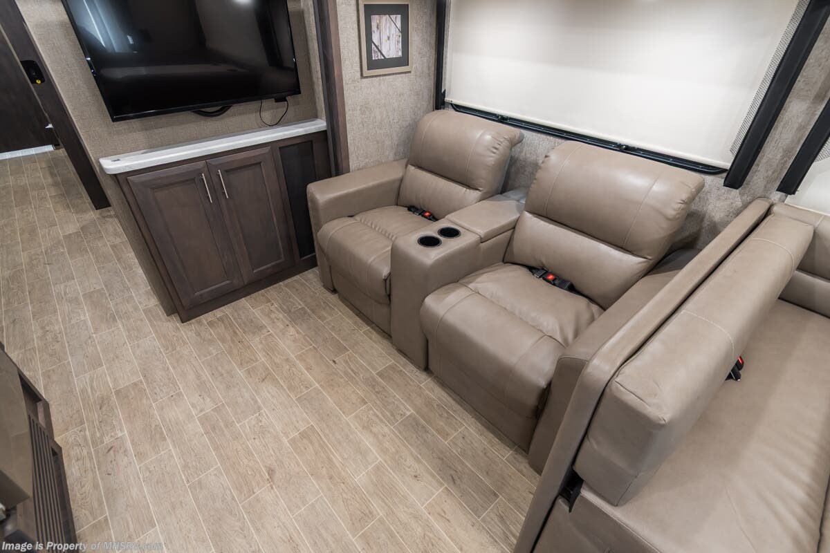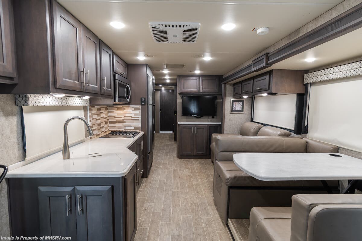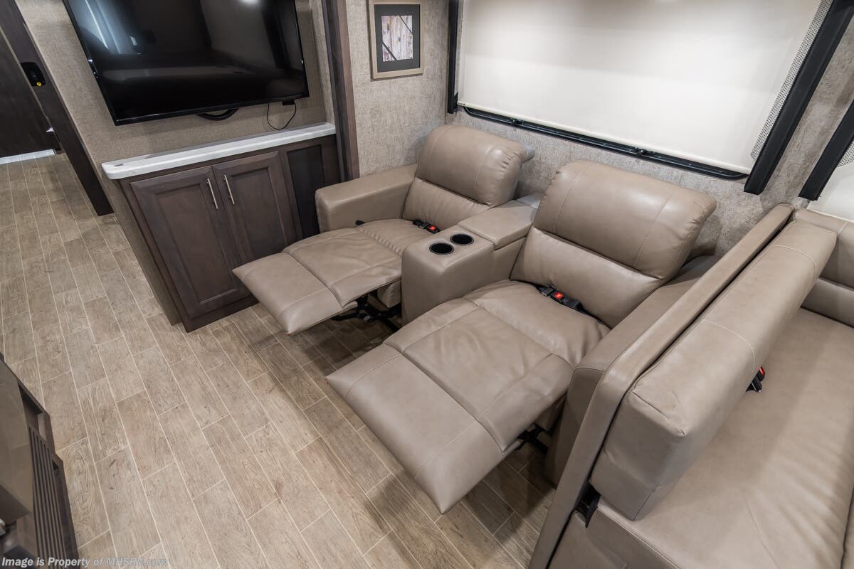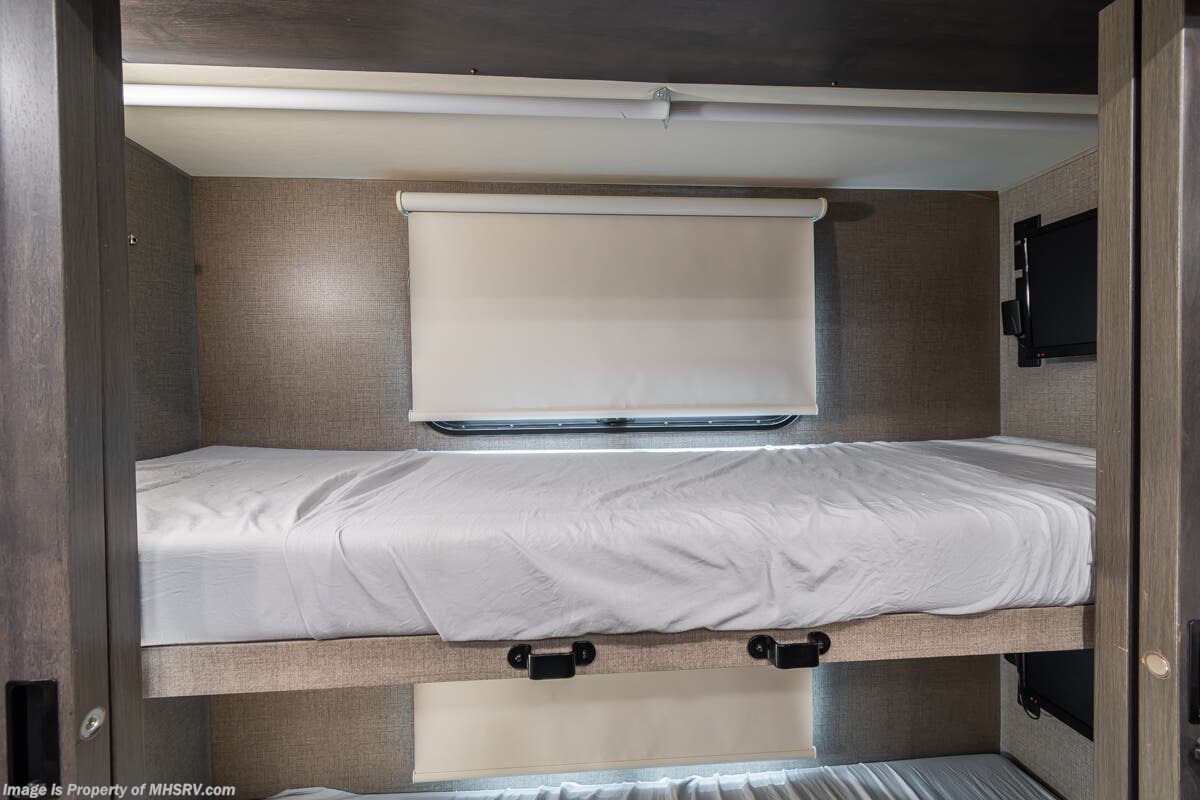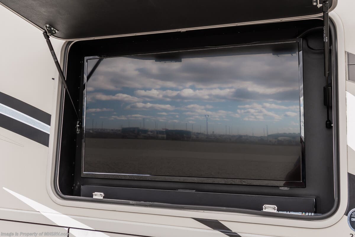 Used Thor Motor Coach RV for sale – 2021 Thor Motor Coach Miramar 37.1 is approximately 39’ 0” in length with 13,447 Miles, 3 slides and features ultra level hydraulic jacks, aluminum wheels, 3 camera system, gas generator, Ford V8 7.3L gas engine, Ford chassis, smart wheel, tilt/telescoping steering wheel, power visor, patio awning, pass through storage, docking lights, black tank flush, water filtration system, exterior shower, exterior TV, ladder, solar, inverter, leather seating, 7 foot ceiling, fireplace, hardwood cabinets, convection microwave, residential refrigerator, 3 burner gas range, King bed, bunk beds, 2 Full Bath, over head loft, theater seats and much more. For additional details on this unit and our entire inventory including brochures, window sticker, videos, photos, reviews & testimonials as well as additional information about Motor Home Specialist and our manufacturers please visit us at or call 800-335-6054 for our Texas location or 334-288-0331 for our Alabama location. At Motor Home Specialist, we DO NOT charge any prep or orientation fees like you will find at other dealerships. Read Thousands upon Thousands of 5-Star Reviews at and See What They Had to Say About Their Experience at Motor Home Specialist.