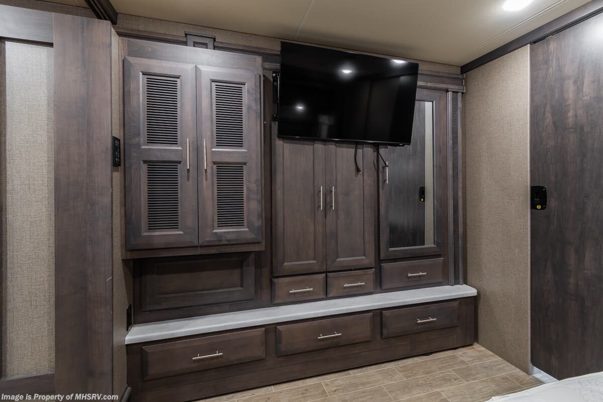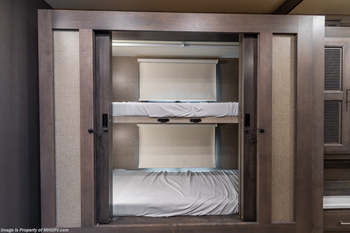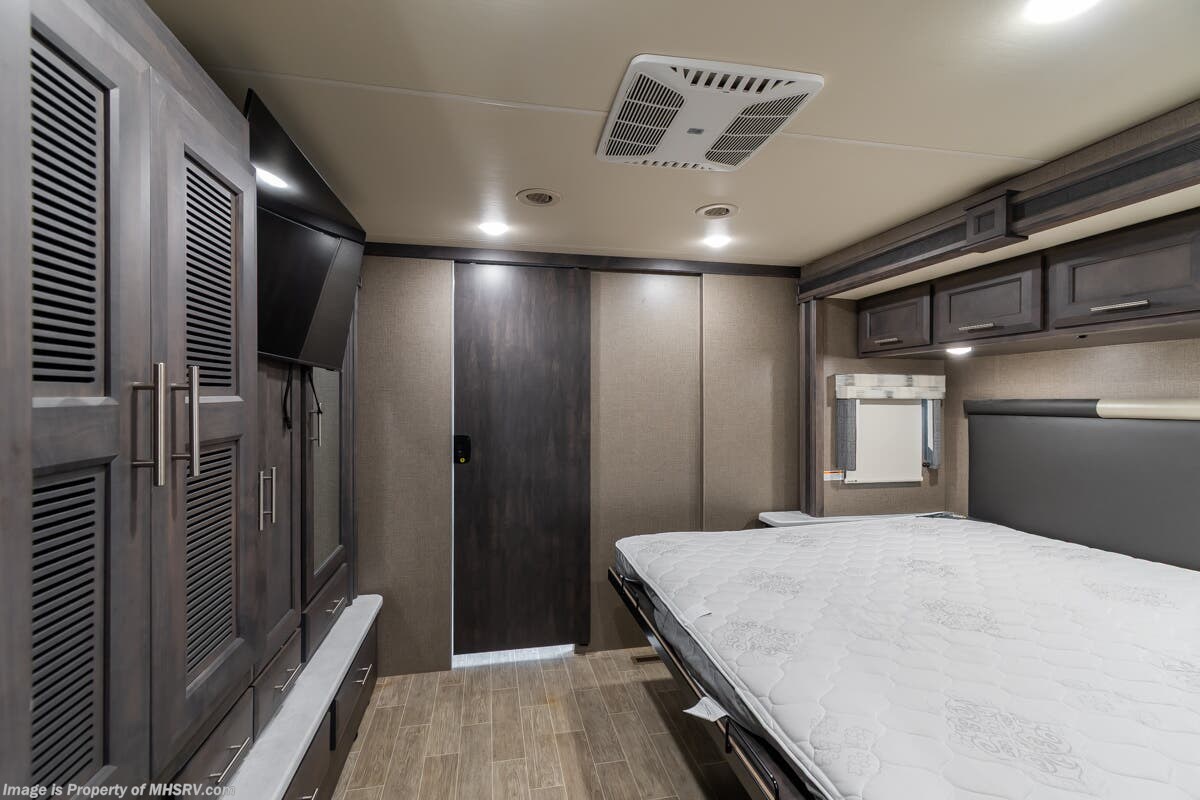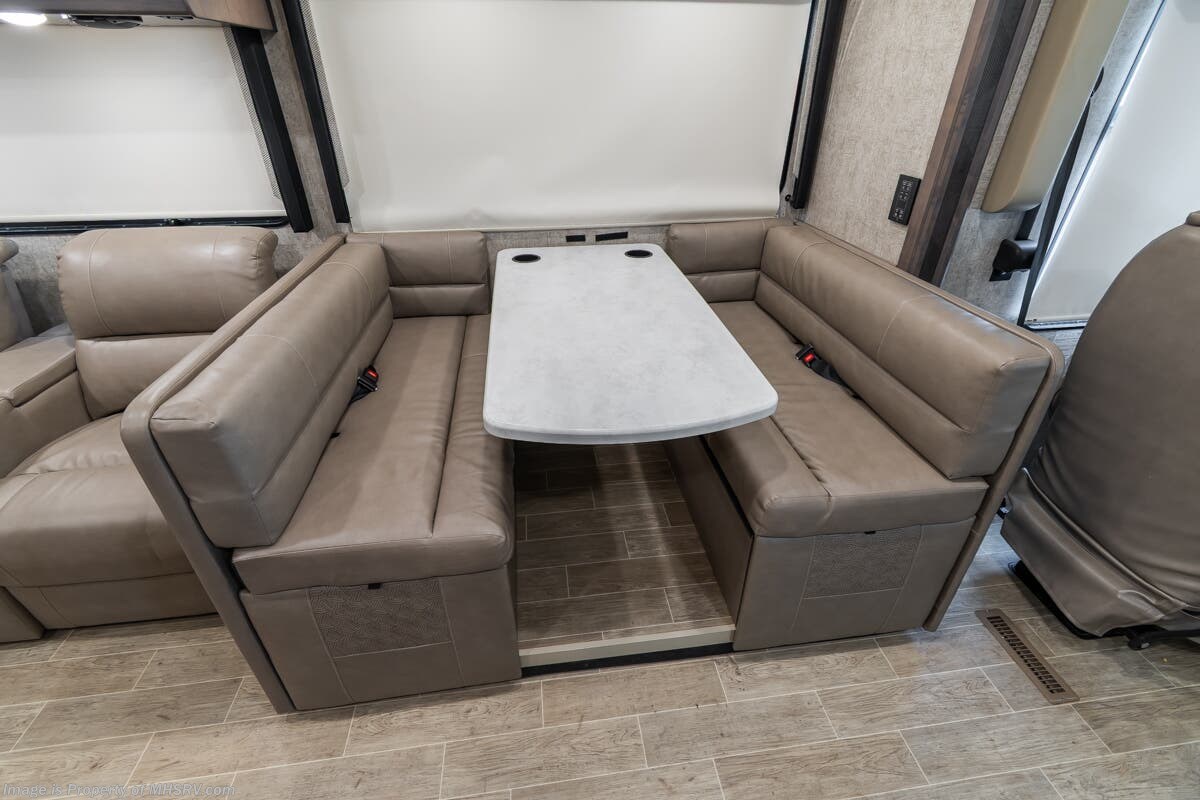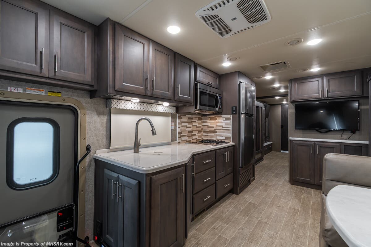 Used Thor Motor Coach RV for sale – 2021 Thor Motor Coach Miramar 37.1 is approximately 39’ 0” in length with 13,447 Miles, 3 slides and features ultra level hydraulic jacks, aluminum wheels, 3 camera system, gas generator, Ford V8 7.3L gas engine, Ford chassis, smart wheel, tilt/telescoping steering wheel, power visor, patio awning, pass through storage, docking lights, black tank flush, water filtration system, exterior shower, exterior TV, ladder, solar, inverter, leather seating, 7 foot ceiling, fireplace, hardwood cabinets, convection microwave, residential refrigerator, 3 burner gas range, King bed, bunk beds, 2 Full Bath, over head loft, theater seats and much more. For additional details on this unit and our entire inventory including brochures, window sticker, videos, photos, reviews & testimonials as well as additional information about Motor Home Specialist and our manufacturers please visit us at or call 800-335-6054 for our Texas location or 334-288-0331 for our Alabama location. At Motor Home Specialist, we DO NOT charge any prep or orientation fees like you will find at other dealerships. Read Thousands upon Thousands of 5-Star Reviews at and See What They Had to Say About Their Experience at Motor Home Specialist.