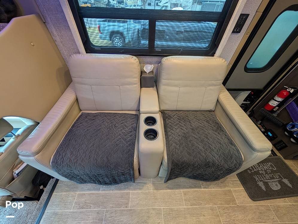 A convertible booth dinette and reclining theater seating provide additional sleeping options, making this coach incredibly versatile for families or entertaining friends.