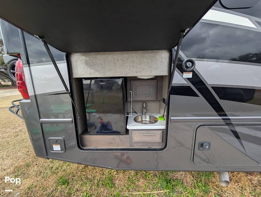 Outside, this Omni truly shines. Enjoy the outdoor kitchen, exterior entertainment center complete with soundbar and TV, generous basement storage, and a power awning that creates the perfect shaded gathering space. Whether you're tailgating, camping, or hosting at the lake, this coach is built for outdoor living as much as indoor comfort.