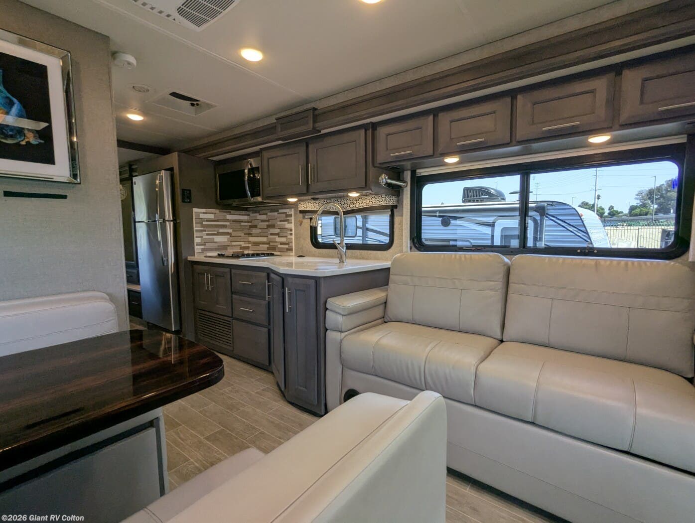 - Full-Wall Slide: Spacious living area with a sleeper sofa, Dream Dinette, and 39" TV for cozy gatherings.