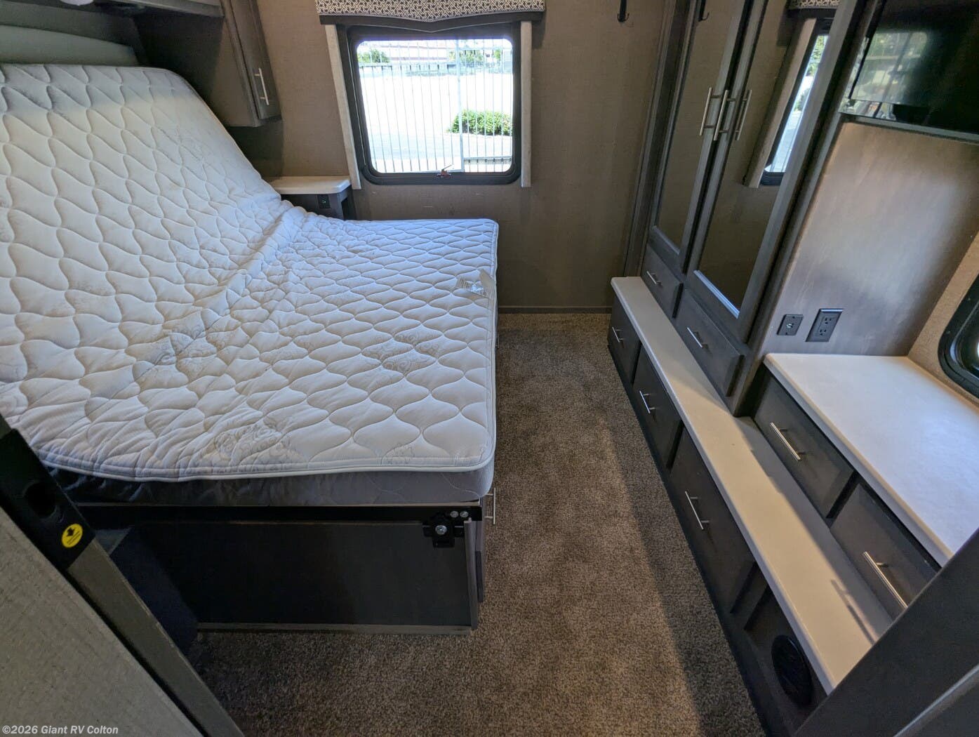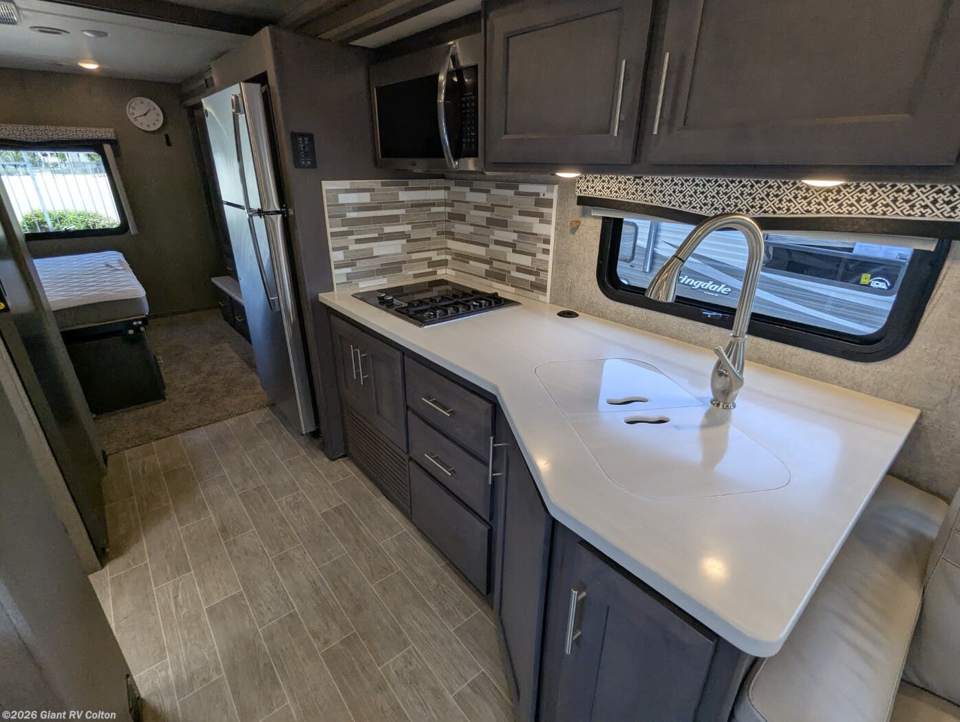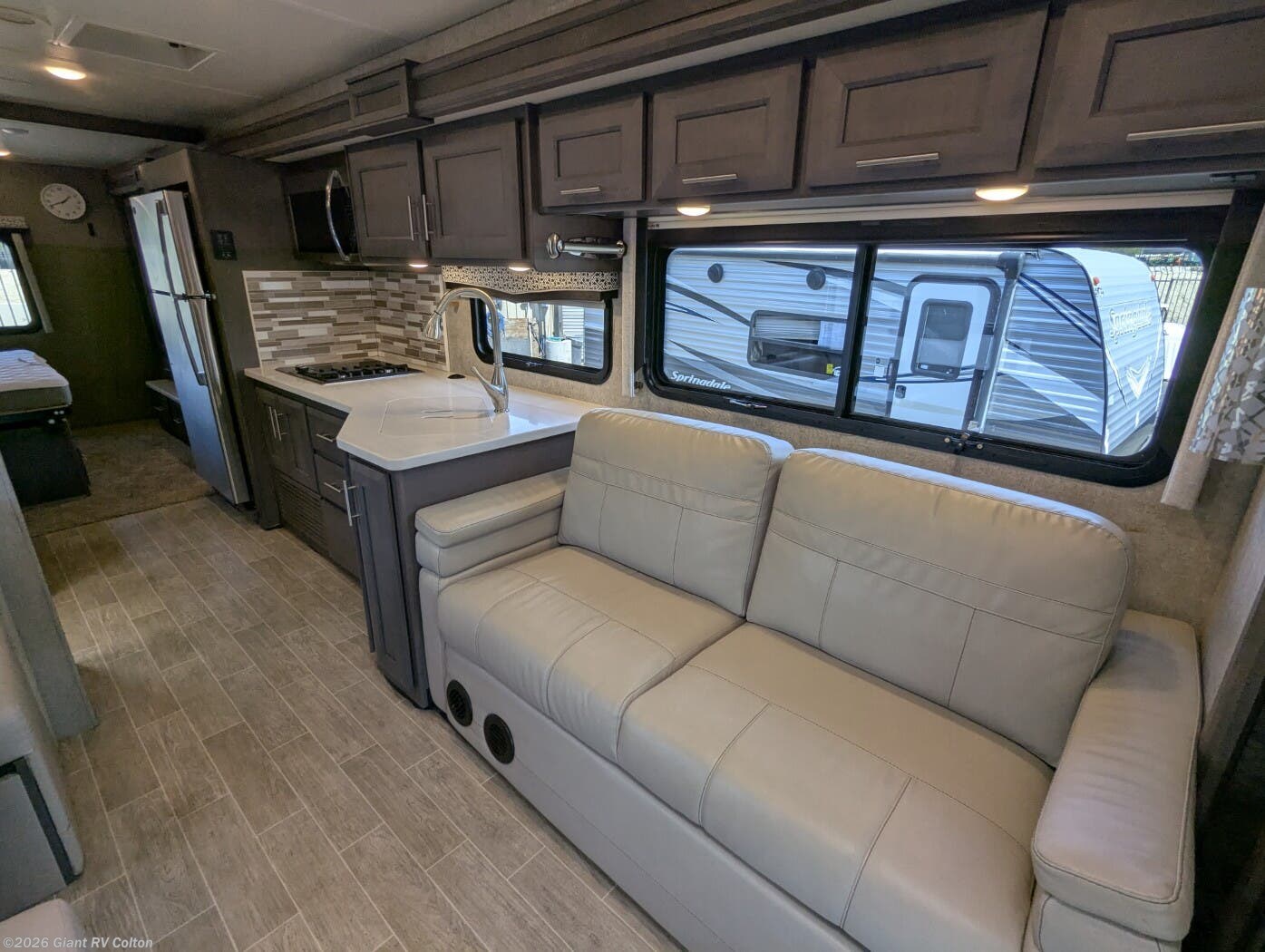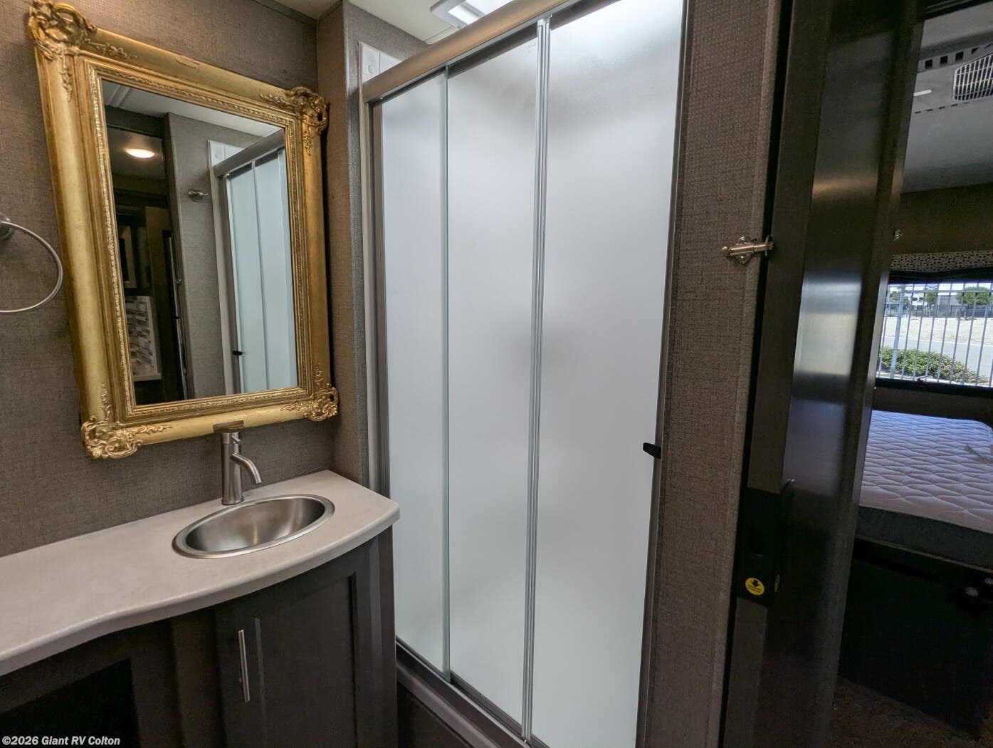 - Outdoor Kitchen: Equipped with a 2.5 cu. ft. refrigerator, sink, 20' power awning, and 32" TV for camping.
