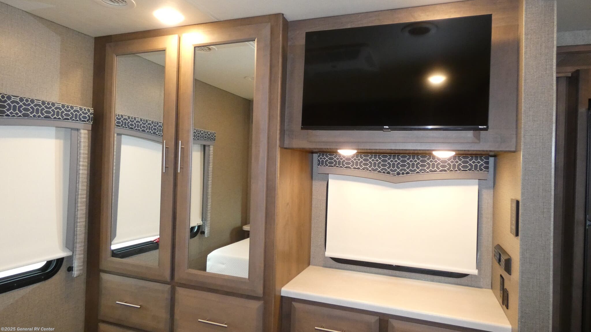 Experience the ultimate in luxurious travel with the 2021 Thor Motor Coach Omni XG32. This stunning RV is built on a robust Ford F550 chassis and powered by a mighty Power Stroke V8 engine, offering 330 horsepower and 825 lb-ft of torque. Whether you're cruising down the highway or parked at your favorite campsite, the Omni XG32 provides a seamless blend of comfort, style, and functionality. Inside, you'll find a thoughtfully designed layout featuring a front living area with a cozy cab-over bunk and theater seating, perfect for relaxing with family and friends. The center kitchen is equipped with a full-size refrigerator and a two-burner cooktop, making meal preparation a breeze. The 70" Dream Dinette offers a versatile space for dining or converting into an additional sleeping area. At the rear, a private bedroom with a queen bed and ample storage ensures restful nights on the road. With a 14 ft. powered retractable awning, you can enjoy outdoor living at its finest. With a sleeping capacity for up to eight, this RV is ideal for family adventures. The Omni XG32 also boasts impressive towing capabilities, allowing you to bring along your favorite outdoor toys. Visit your nearest General RV dealership to discover more about this exceptional motorhome and start your journey today!