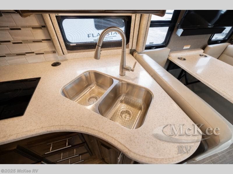 There's room in this motorhome for the whole family! Everyone will have a comfortable place to lay their head at night between the set of 27" x 24" bunk beds which can convert into a wardrobe/sofa, the 54" x 74" overhead bunk, the 68" sofa bed, and the Tilt-A-View inclining queen bed, plus the 72" Dream Dinette can even convert into a sleeping space. You will appreciate having a stackable washer and dryer so you don't have to bring as many clothes. The full bathroom has a 30" x 36" shower with a glass door and a power vent to eliminate any unwanted steam. You can keep everyone's bellies full with the residential stainless steel refrigerator with ice maker, the electric induction cooktop, and even the 30" over-the-range convection microwave oven!