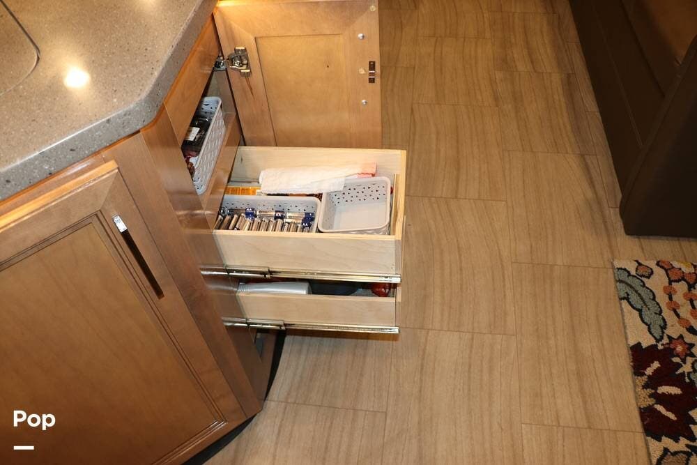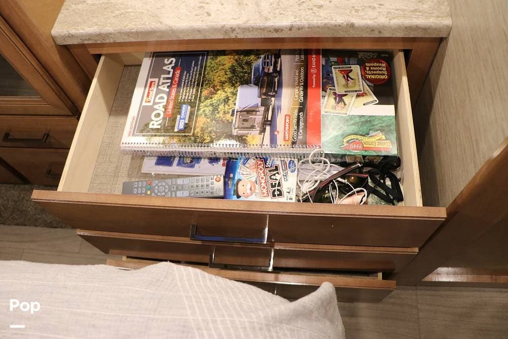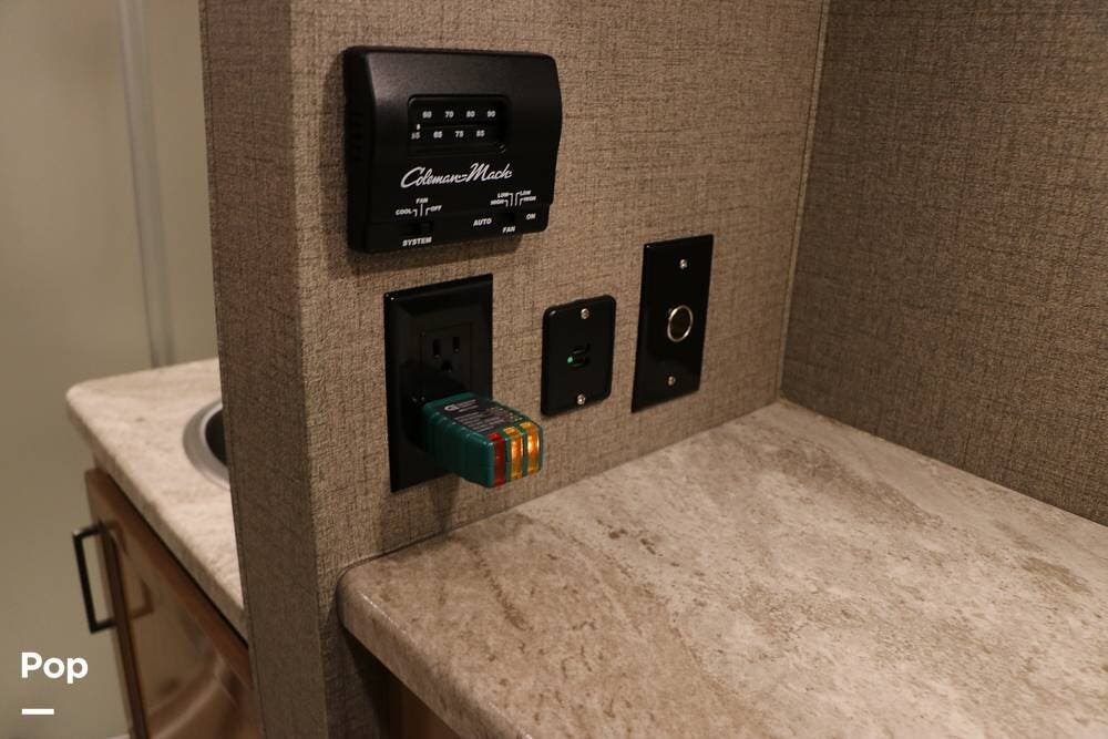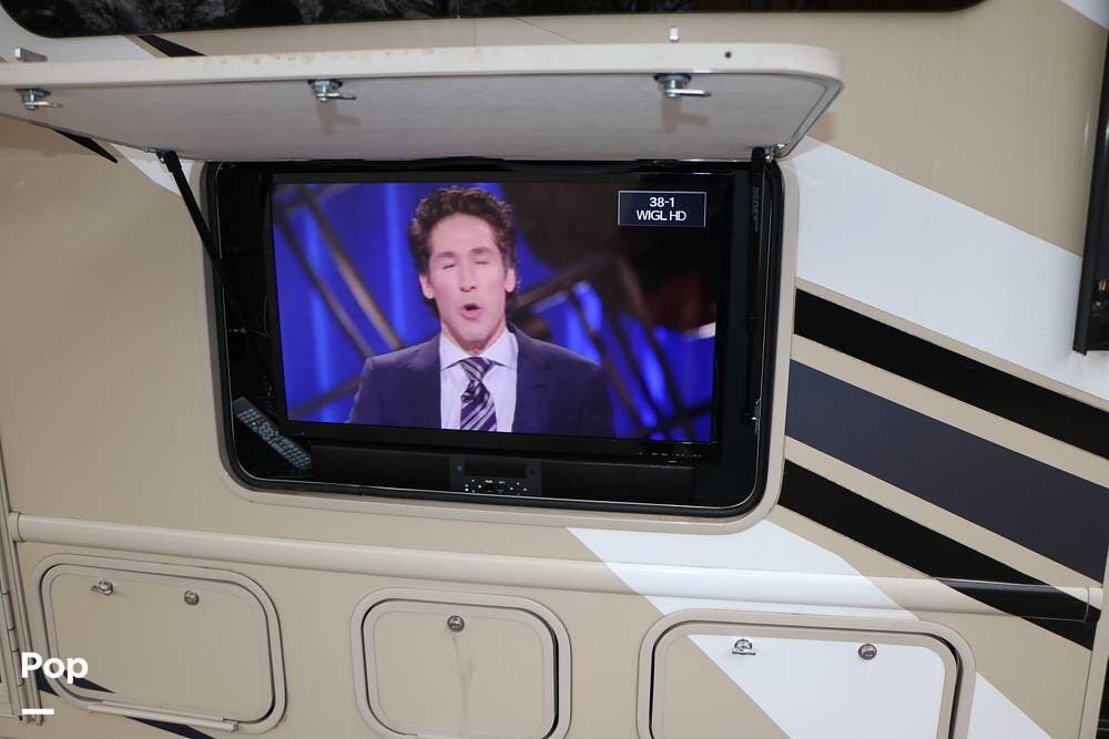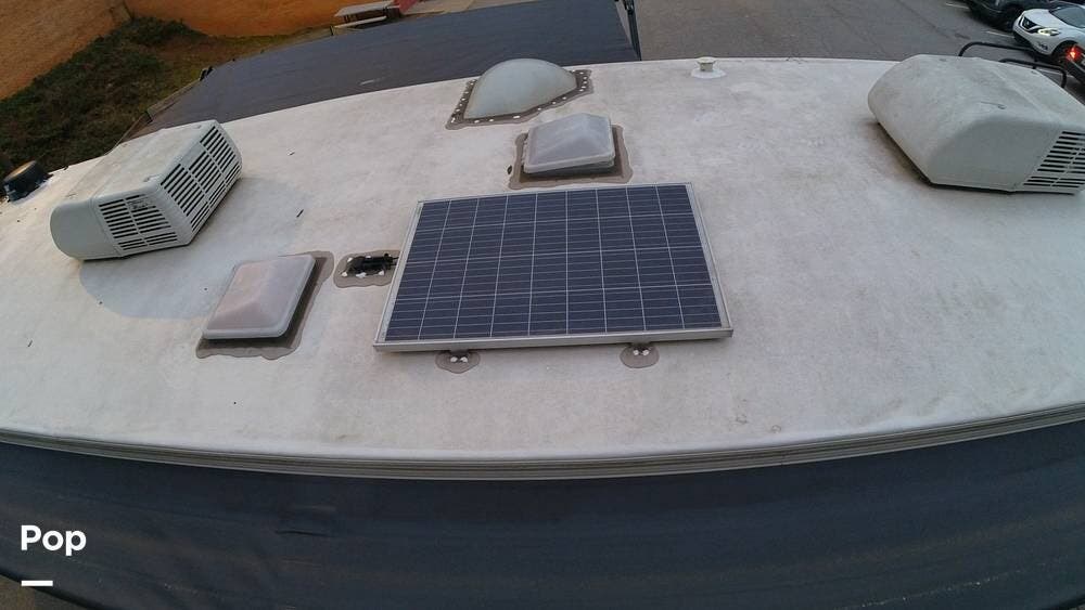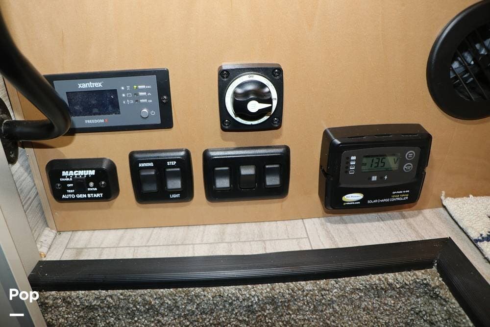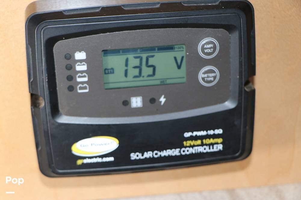 Outside, the large power patio awning and exterior TV let you extend the fun beyond your campsite. The unit is equipped with a solar panel and controller so you can keep your house batteries charged and ready for action. The unit is also equipped with a Winegard Digital Antenna. There are several large storage spaces and easy access to all the RV systems.