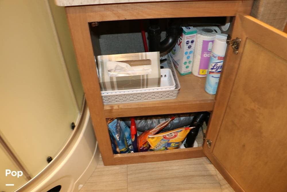 The jackknife sofa opposite the dinette can be converted into another sleeping space, and the over-the-cab bed and pull-out TV provide a great place to watch a movie or the big game. The exterior TV makes this a great RV for tailgating at your favorite teams' events!
