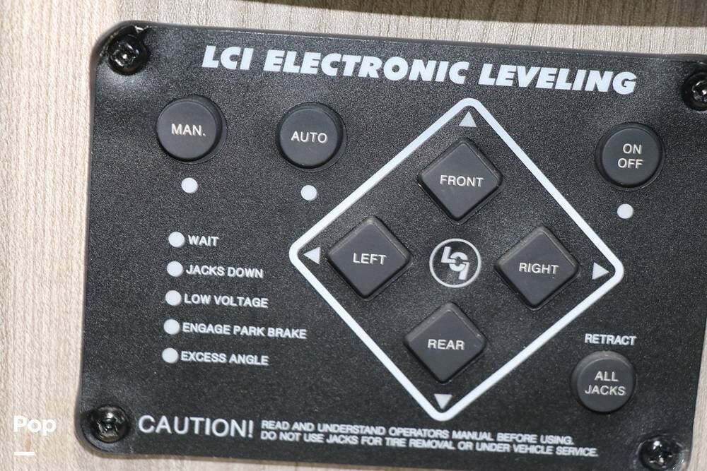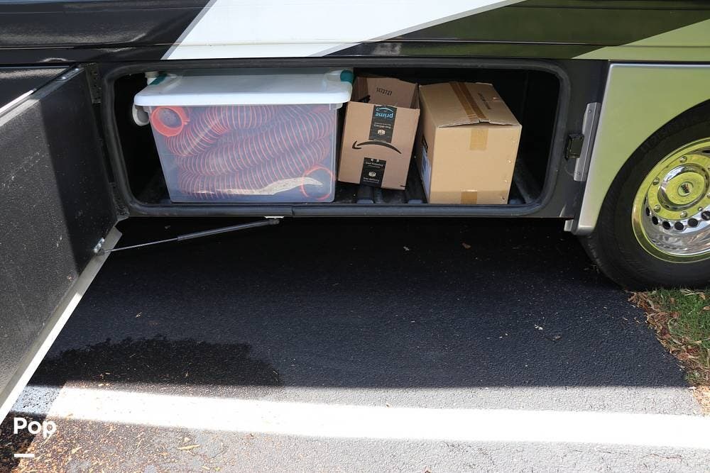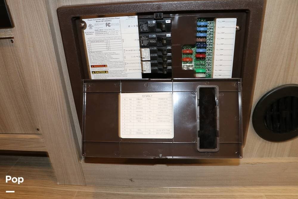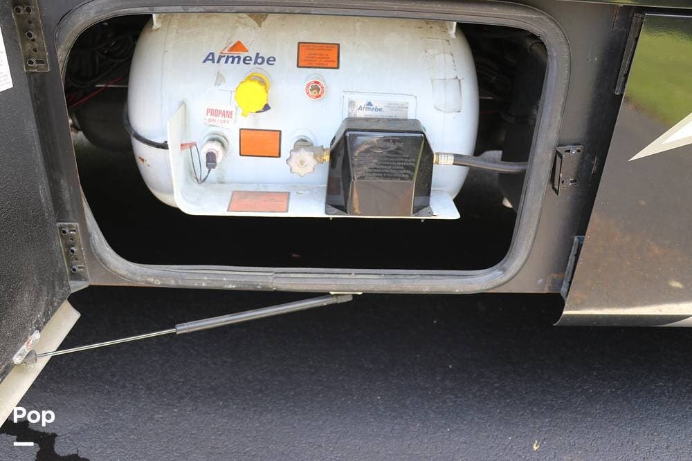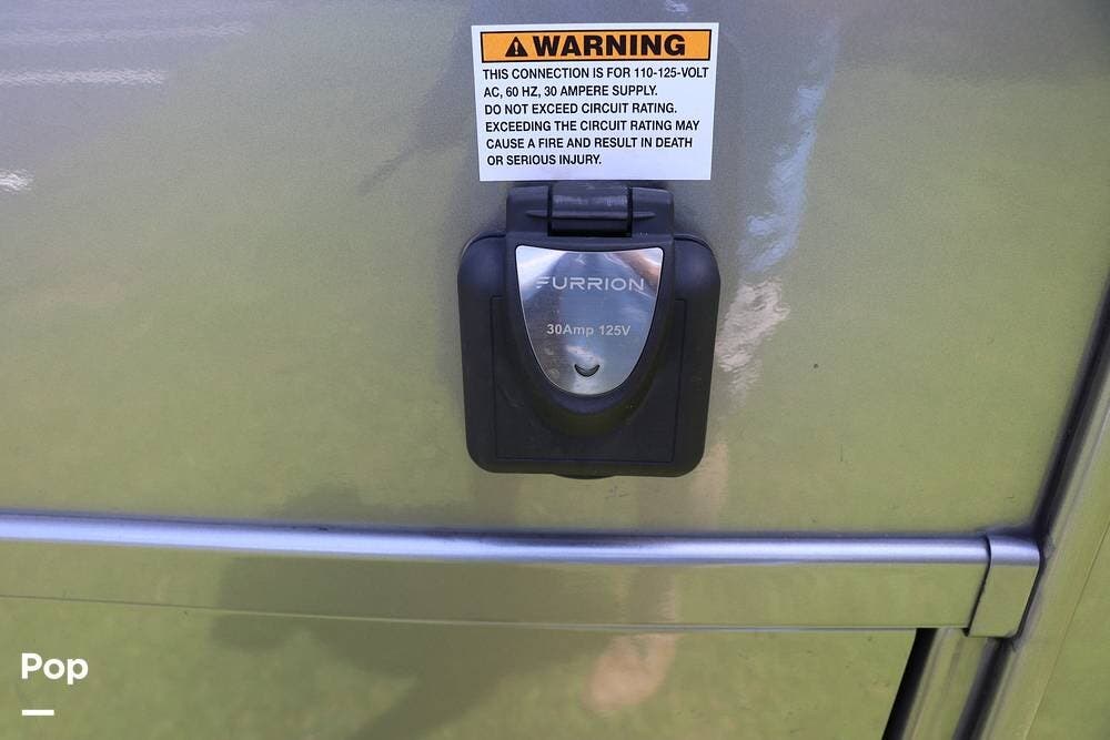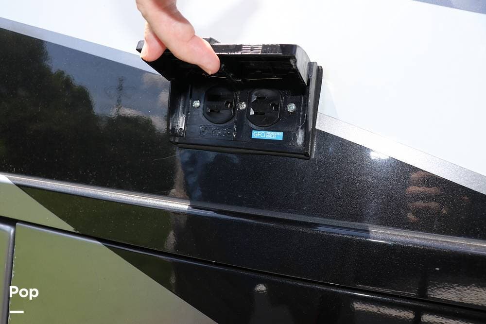 Outside, the large power awning extends the fun outdoors when at the campsite. There are large exterior storage compartments, and all of the RV systems are clearly marked and easily accessible around the unit.