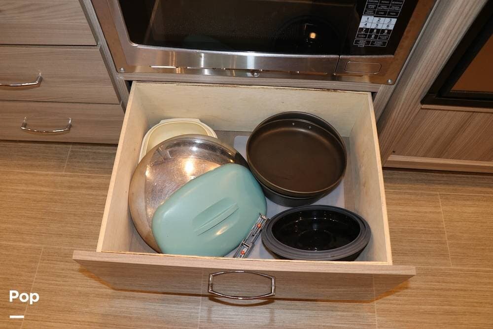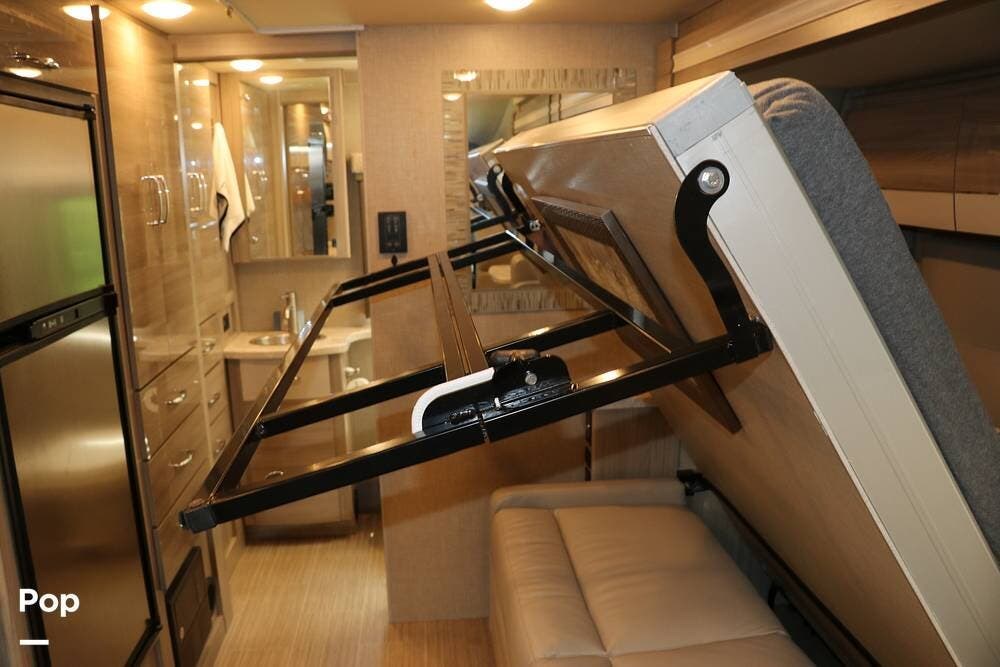 The large dinette is across from the entry door, and the sofa, which quickly converts into your master bed at the touch of a button, provides a multi-function living space that fully utilizes every inch of the floorplan and gives you flexibility during the day or on the road.